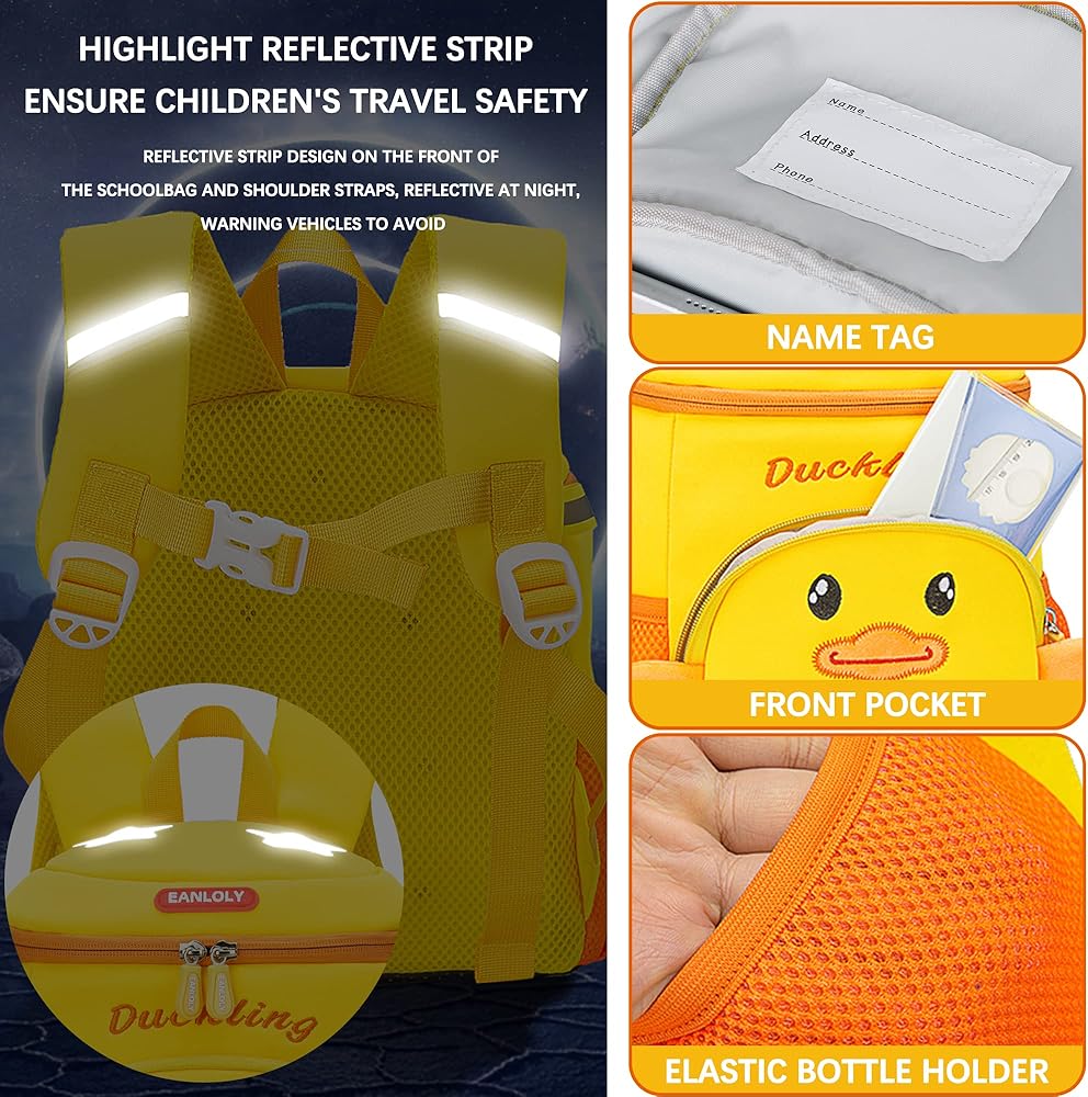 Cute 3D duck cartoon pattern is kids' favorite preschool kids backpack,perfect for toddler girls boys