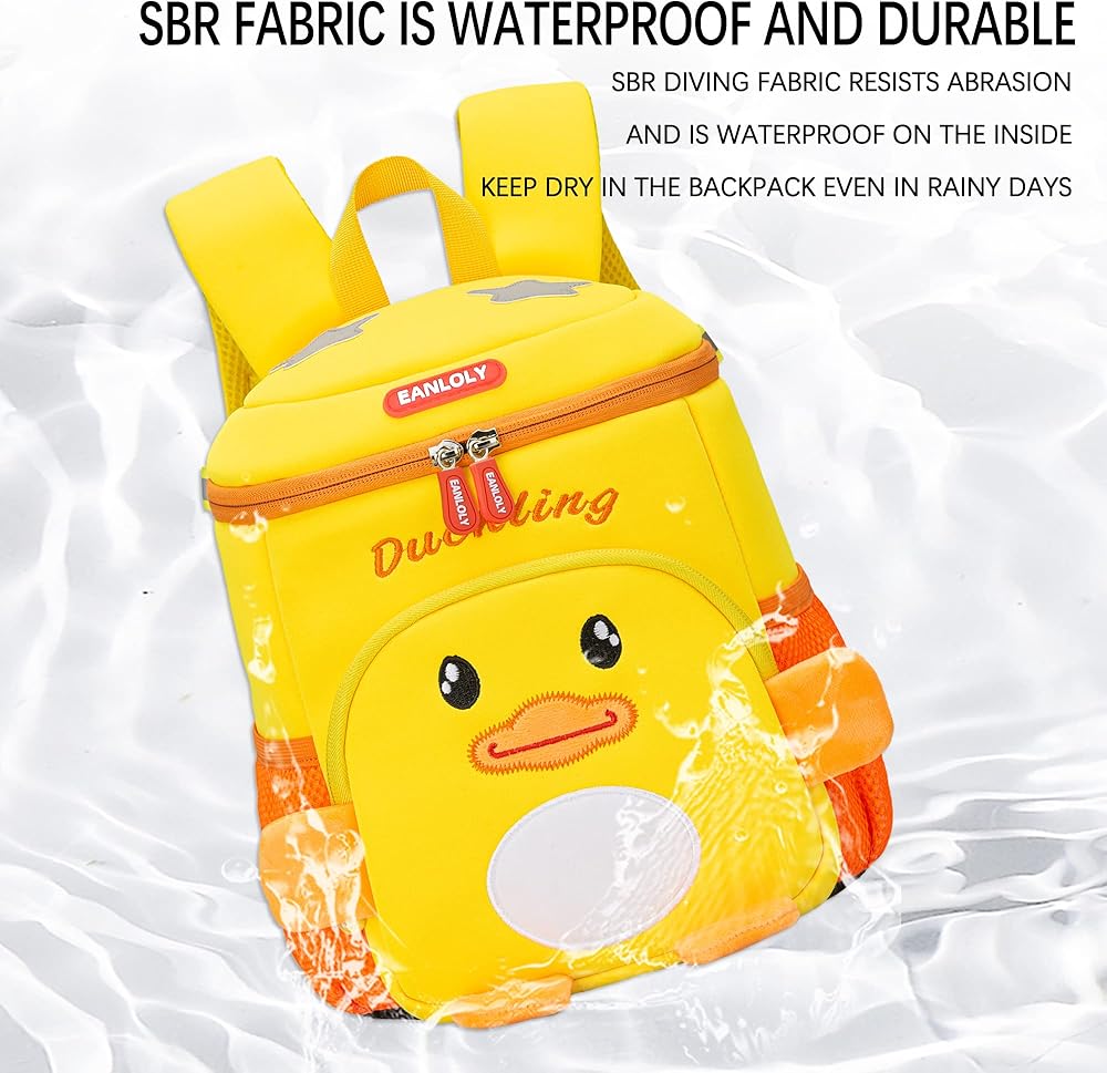 حقيبة ظهر للأطفال الصغار من EANLOLY، حقيبة ظهر ثلاثية الأبعاد لطيفة على شكل حيوانات كرتونية للأطفال في مرحلة ما قبل المدرسة، مع حزام صدر وحامل زجاجة، حقيبة كتب مقاومة للماء من النيوبرين، حقيبة ظهر مدرسية للأولاد والبنات، بطة صفراء