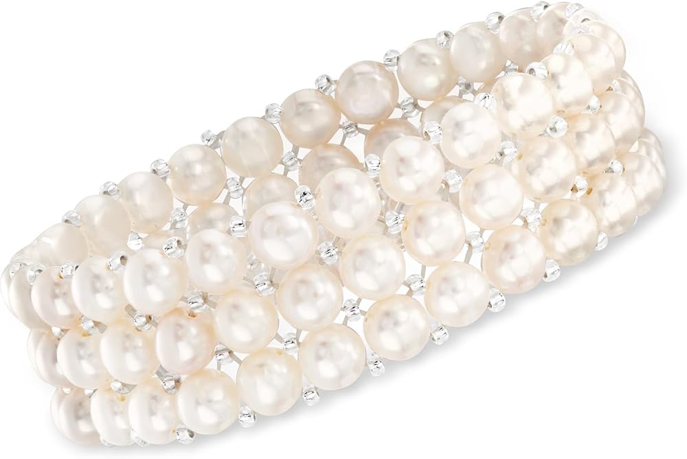 تقدم شركة Ross-Simons أنماطًا معاصرة ذات جاذبية خالدة. يحتاج كل صندوق مجوهرات إلى هذا الطراز الكلاسيكي المناسب للميزانية. يتميز سوارنا المطاطي بثلاثة صفوف من لؤلؤ المياه العذبة المزروعة مقاس 6-7 مم. مثالي للارتداء بدون قلق ودائمًا ما يكون موجودًا عندما تحتاج إليه! تمتد لتناسب تقريبا. 7 بوصات معصم. 3/4 بوصة عرض. سوار مطاطي من اللؤلؤ الأبيض.
