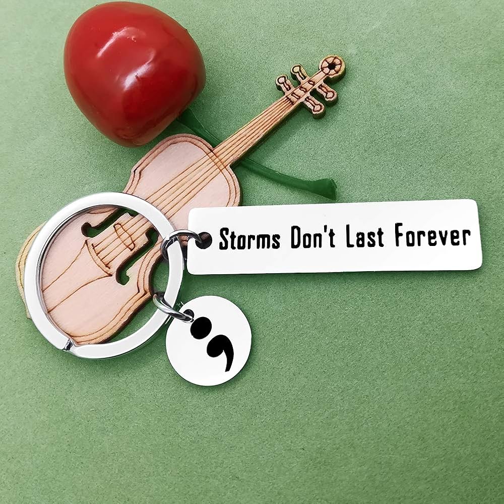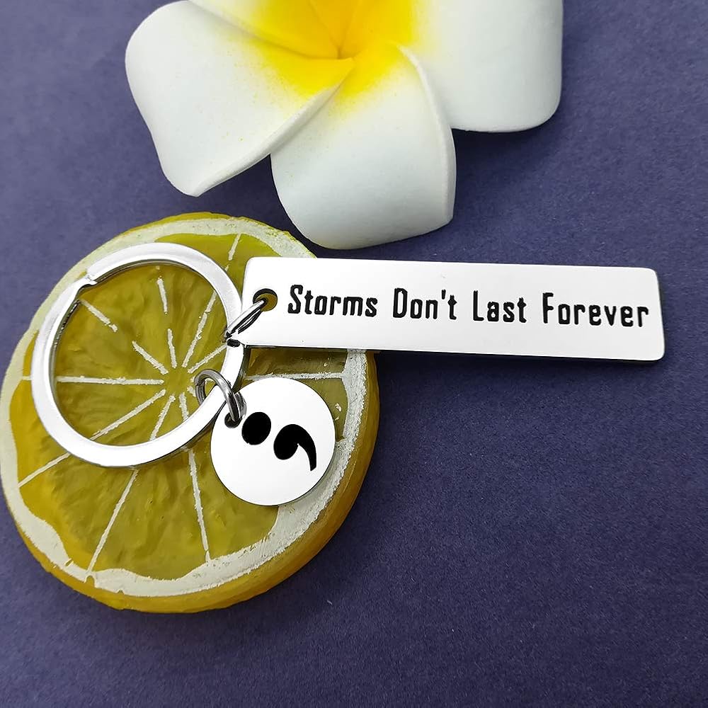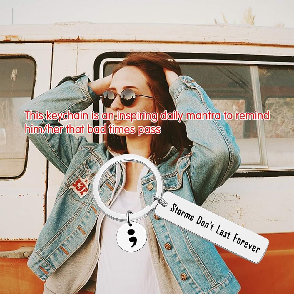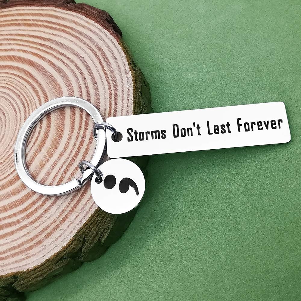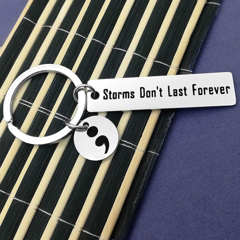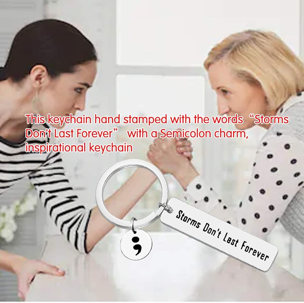 【Inspirational Keychain】- This keychain hand stamped with the words“Storms Don't Last Forever” with a Semicolon charm. The semicolon is representative of a powerful movement aimed at bringing awareness to depression, suicide prevention, self harm, and mental illness awareness.This keychain can constantly remind people to get through bad experiences and get encouragement again.