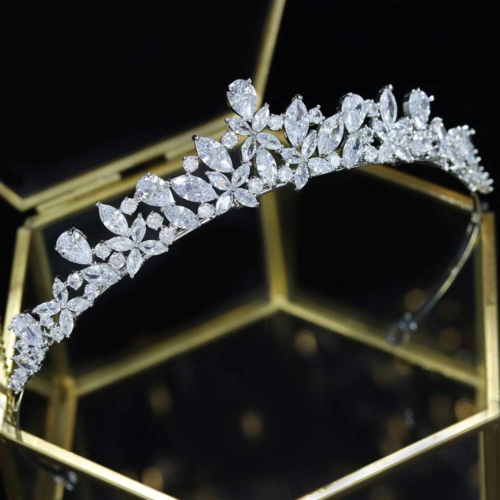 ♛ المادة: هذا التاج الصغير مصنوع من معدن البلاتين المطلي. الزركونيا المكعبة تجعله لامعًا حقًا. تشيكوسلوفاكيا على شكل زهرة. إنها قطعة رأس لامعة رائعة تعطي تأثير زهرة الماس حول الرأس.