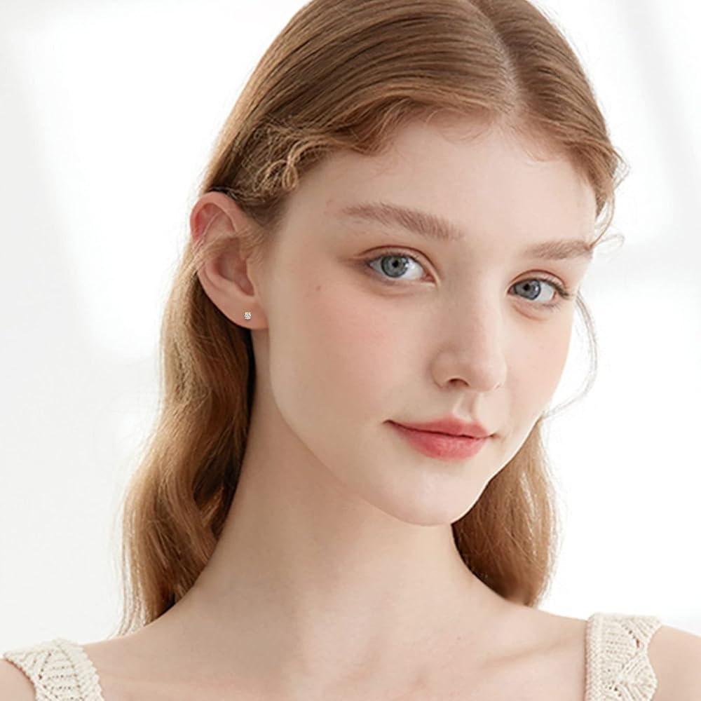 • 【Real Natural Diamond】Classic solitaire studs featuring natural 2MM diamonds,four-prong settings. dainty and minimalist. Diamond total weight:0.06 carat,sparkly on your ears.