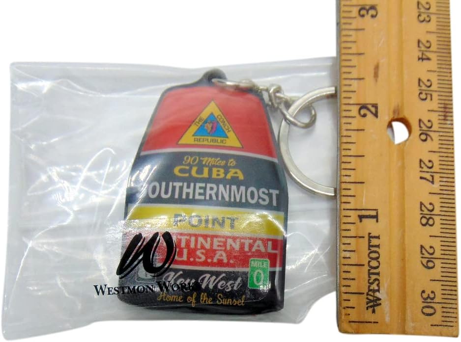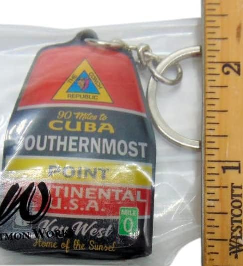 سلسلة مفاتيح بأقصى نقطة في الجنوب مع حلقة معدنية تذكارية لمفتاح ويست فلوريدا مع لمسة نهائية لامعة، 3 بوصة