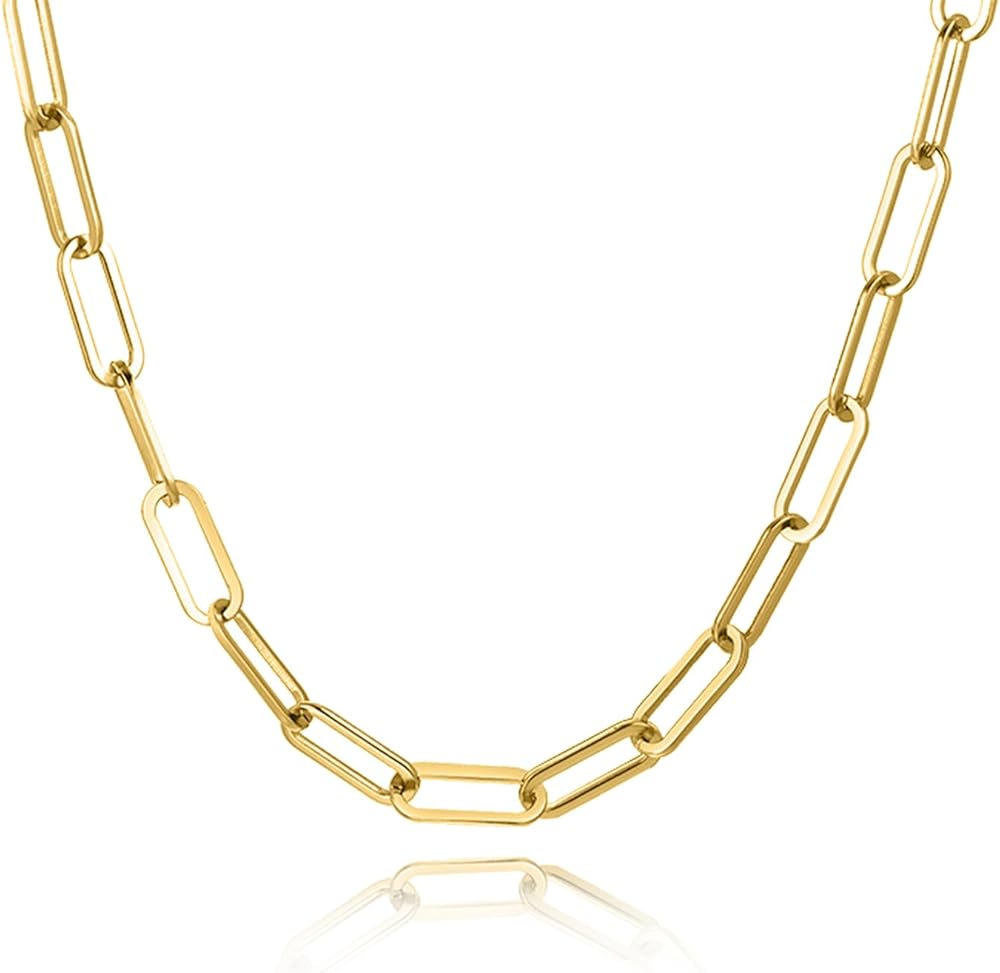 Very thick 14K gold plating that never fades. 3mm Paperclip chain necklace with a length of 17 inch.