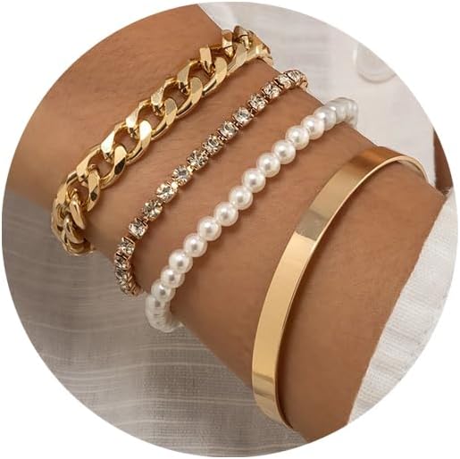 • GOOD QUALITY LAYERED BRACELETS: Our gold chain bracelet set is made of high quality alloy. All stackable bracelets for women are lead-free and nickel-free, making them friendly to sensitive skin and can be worn regularly.Each gold chain is well made and looks authentic. The bracelets are delicately designed, don't worry that this set of gold chain bracelets will weigh down your wrist.