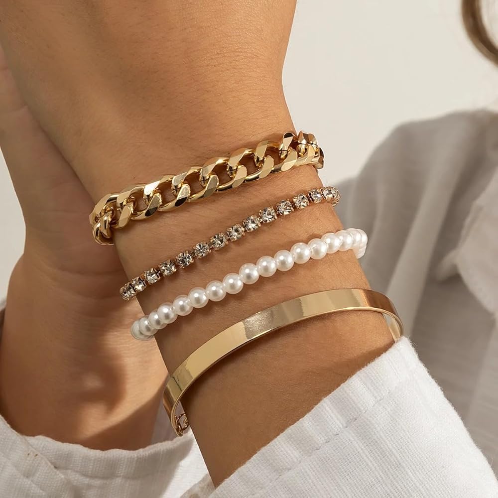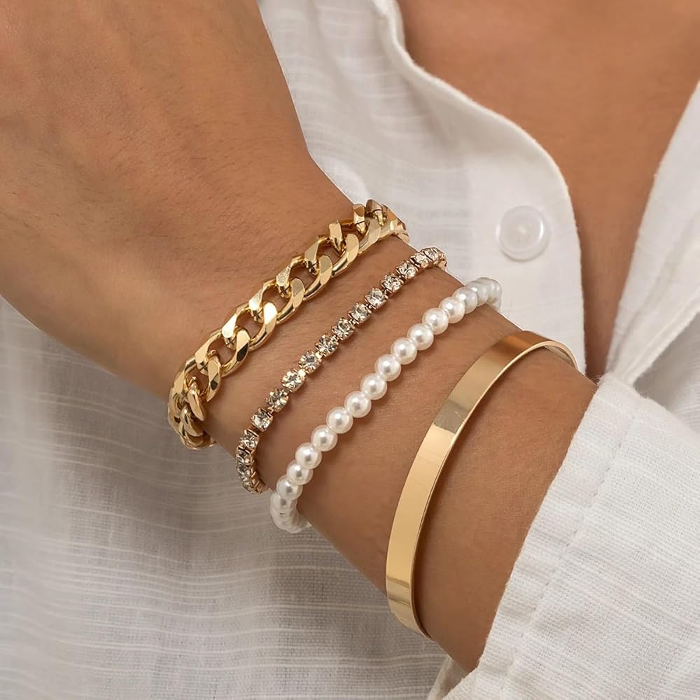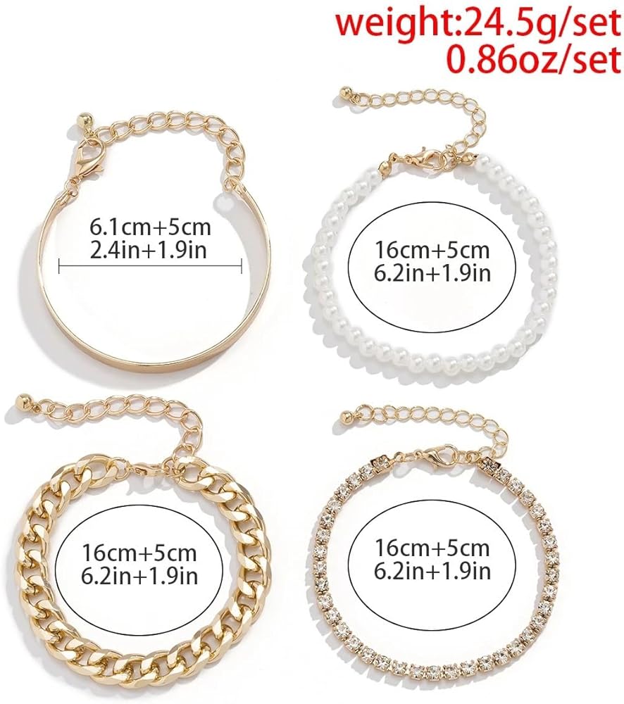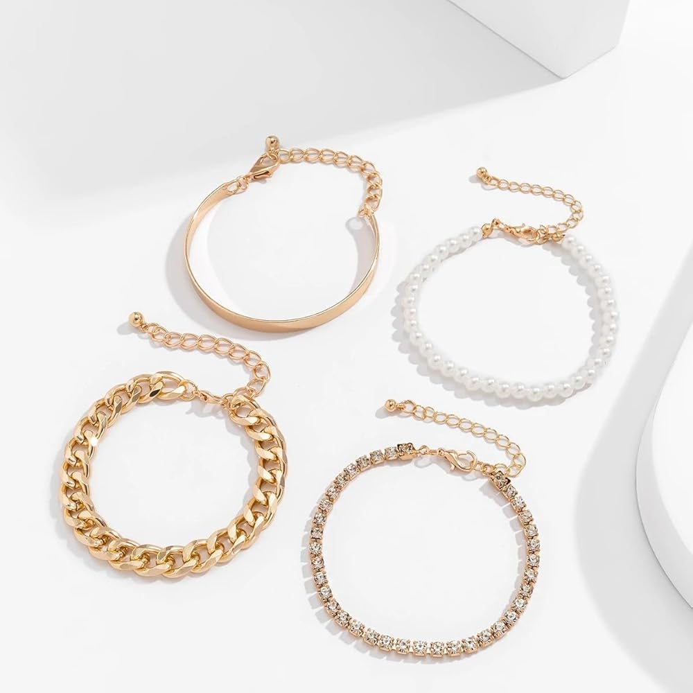 • STYLISH BRACELET SET: You will receive 4 bracelets in individual styles.You can combine and match the dainty gold bracelet as you wish.