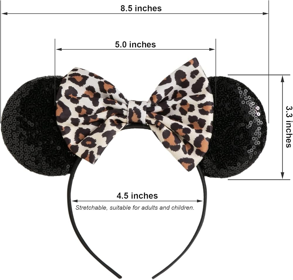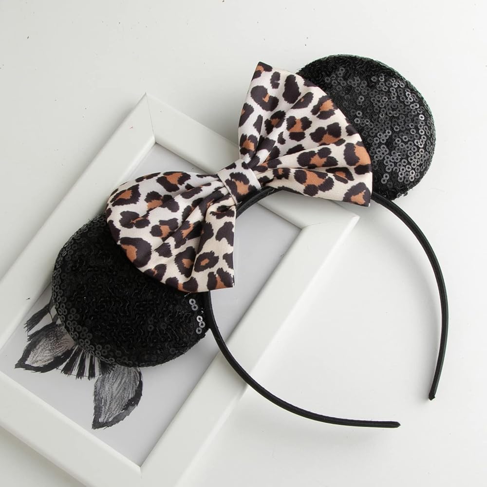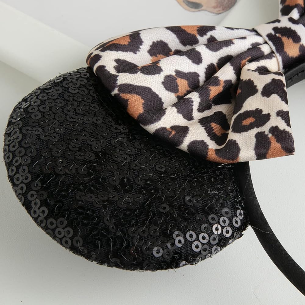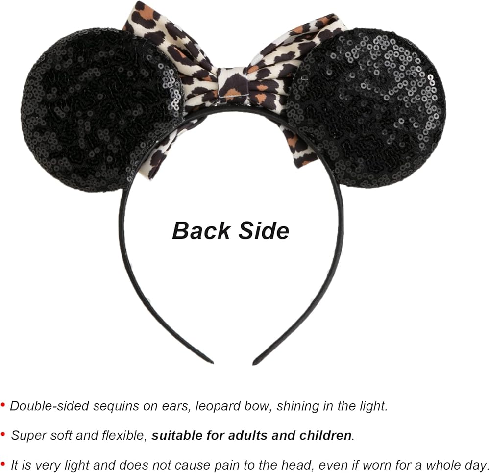 عصابة رأس تشوانغكي بأذني الفأر مع فيونكة لامعة، رباط شعر لامع بالترتر على الوجهين، للاحتفال والمناسبات بعيد الميلاد (XC35)