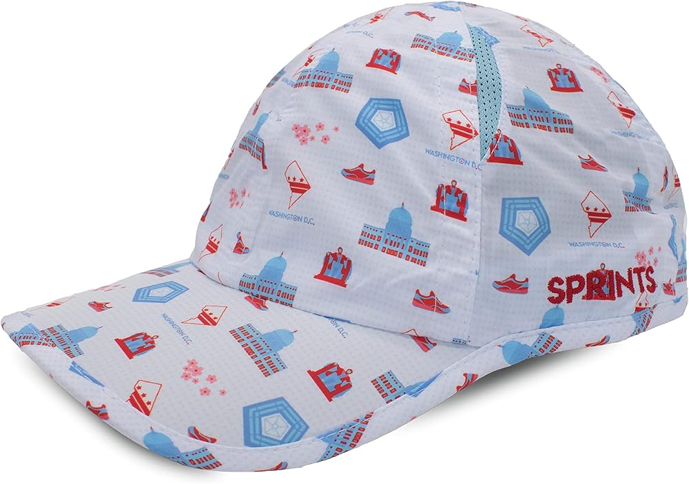 SHOW THE WORLD YOUR SPRINTS - Both fashionable and functional, this DC sports hat features a high-quality print pattern with DC monuments, cherry blossoms, DC flag and a running shoe. It's great for long runs or the gym or just a social outing.