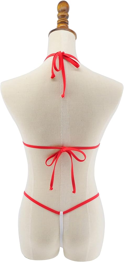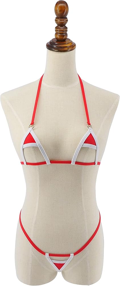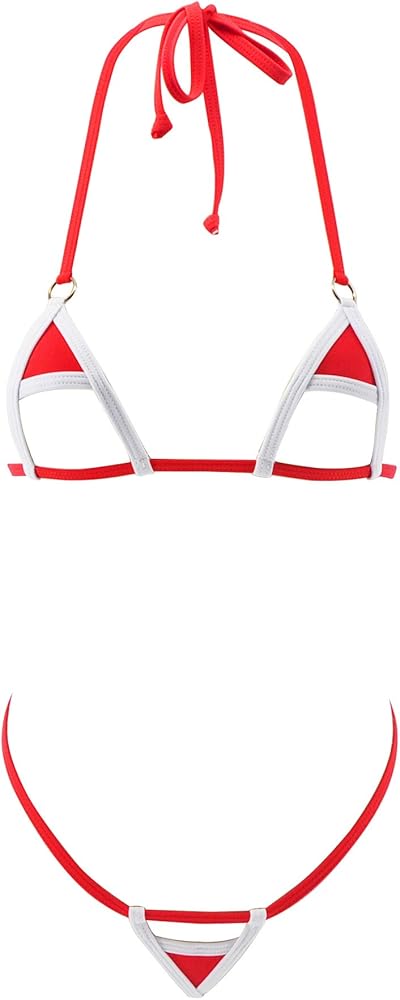 - أحمر أبيض سادة مع حلقات فضية بيك ايه بو مكشوف مايكرو اكستريم يوفر تغطية بسيطة جدًا للجسم. جزء علوي بيكيني بتصميم رقبة طويلة مع حزام قابل للتعديل في الخلف، مما يجعلك مثيرة، مجموعة من قطعة واحدة.