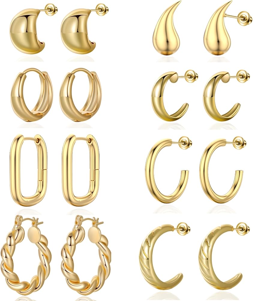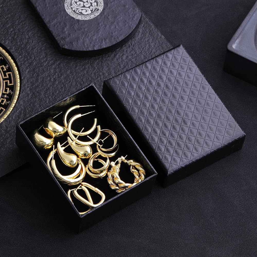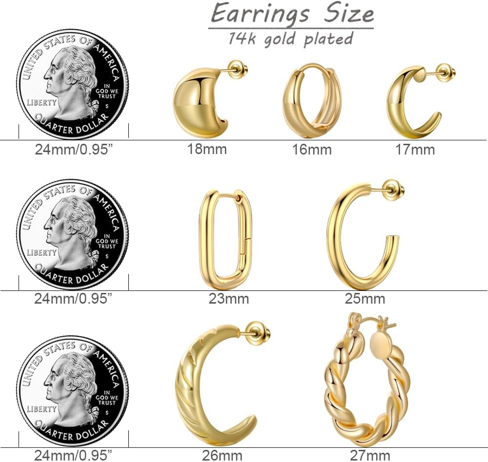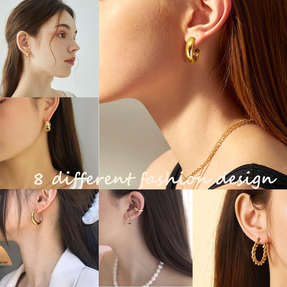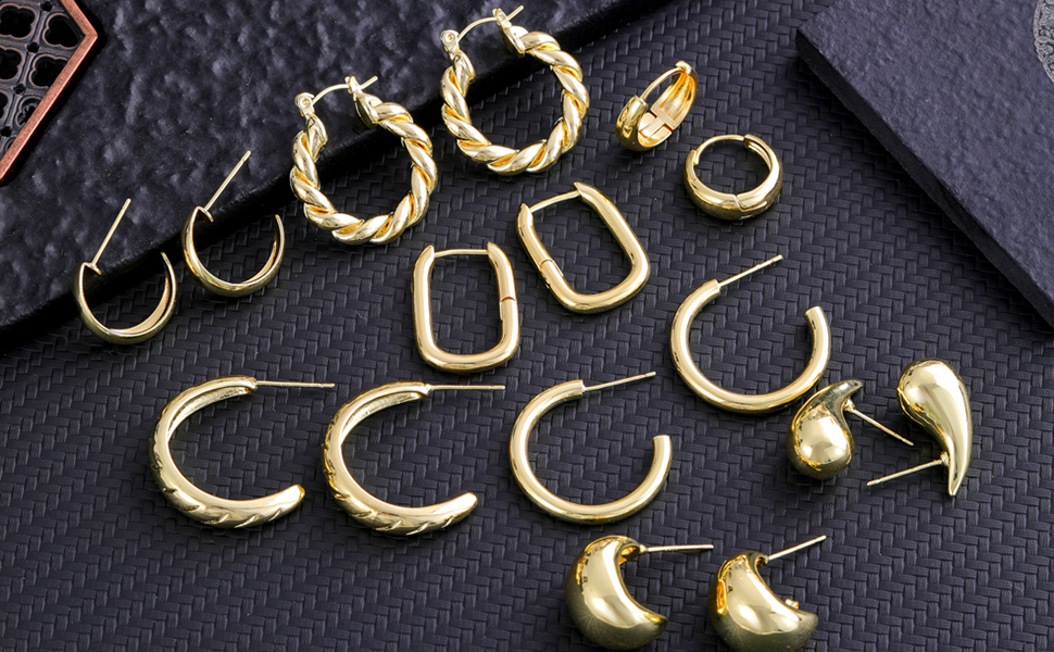 【❀ مجموعة أقراط حلقية ذهبية】سوف تحصل على 8 أنماط وتصميمات مختلفة مثل الدمعة والكرواسون والأنبوب والمكتنزة المفتوحة للاختيار من بينها. يتم تعبئتها في صناديق رائعة ويمكن تقديمها كهدية للأصدقاء أو الأحباء أو أفراد الأسرة. يمكنك ارتداؤها في المناسبات والمهرجانات المختلفة، والتي تبدو أكثر أناقة وسحرًا؛
