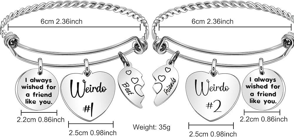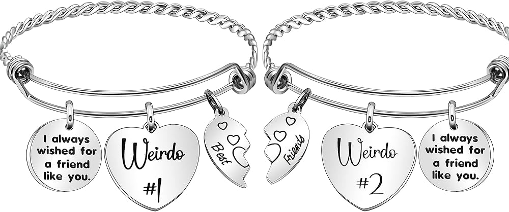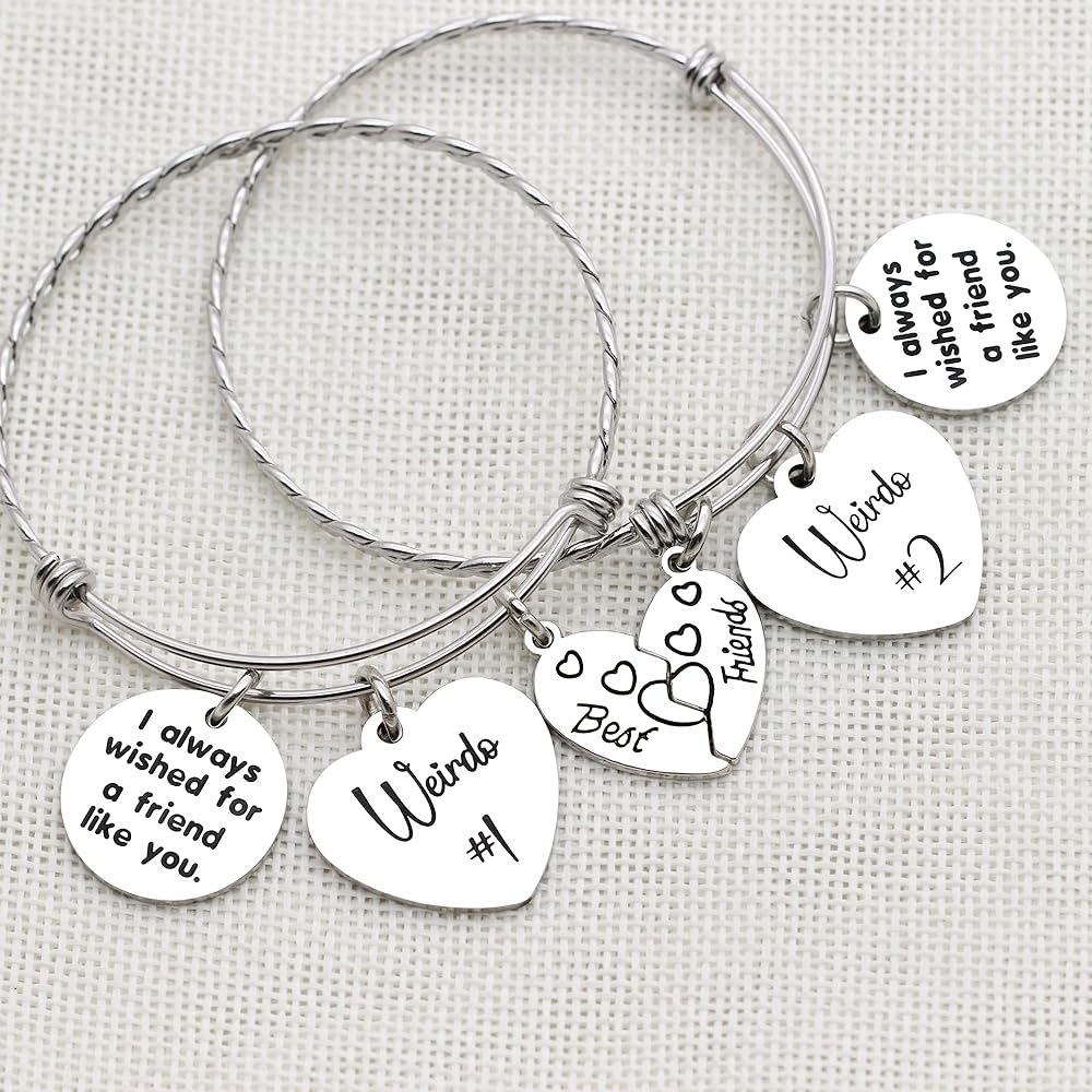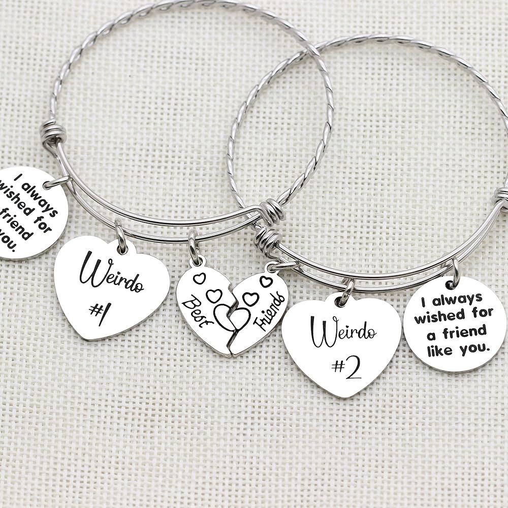 سوار هدية مضحكة لغريدوس من أفضل الأصدقاء سوار مع قلب منقسم للنساء ، أتمني لصديق مثلك ، Weirdo 1 Weirdo 2 سوار مجموعة