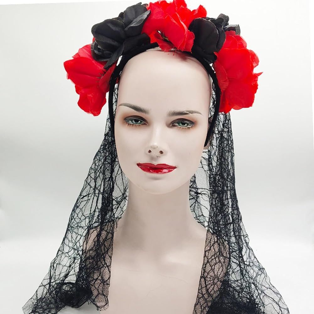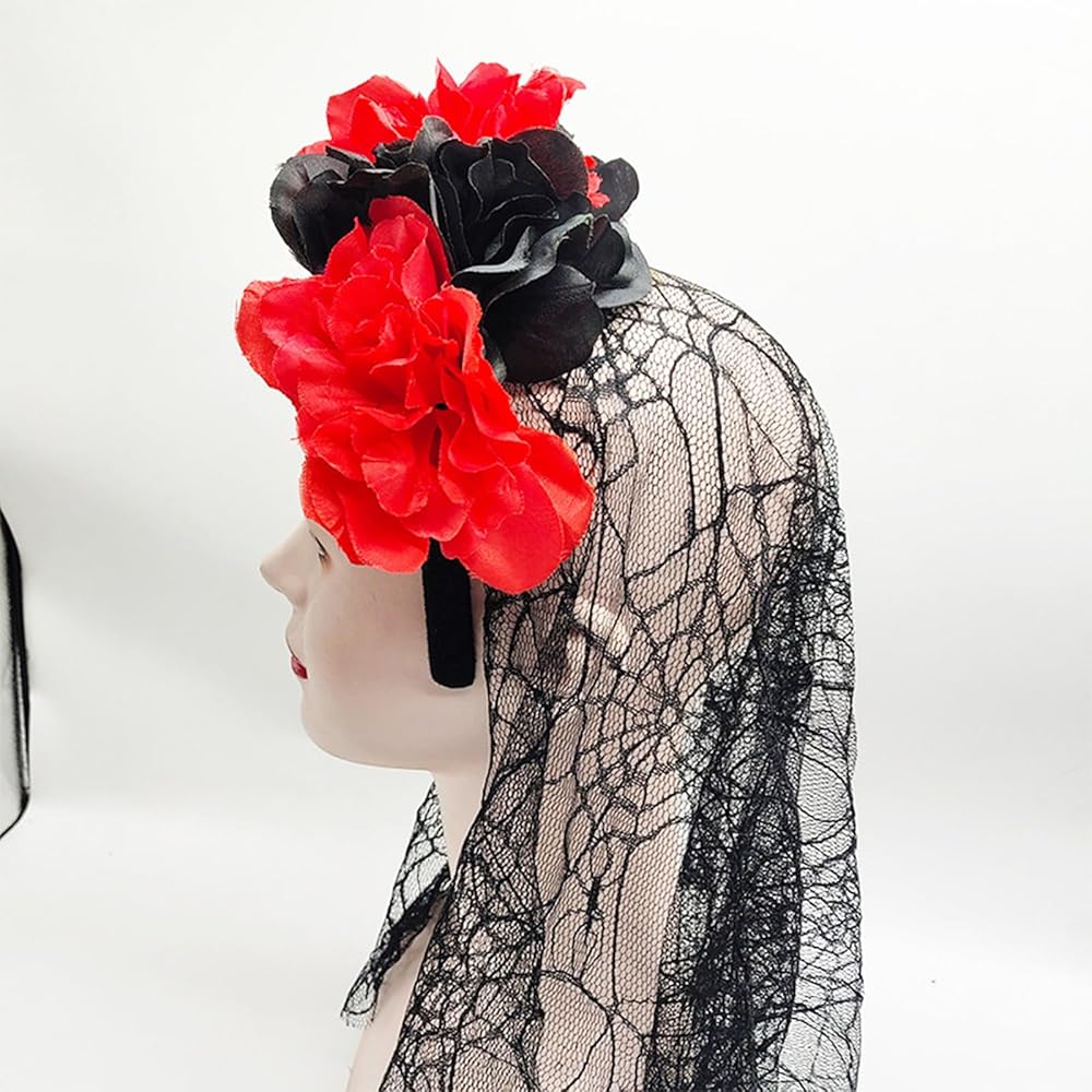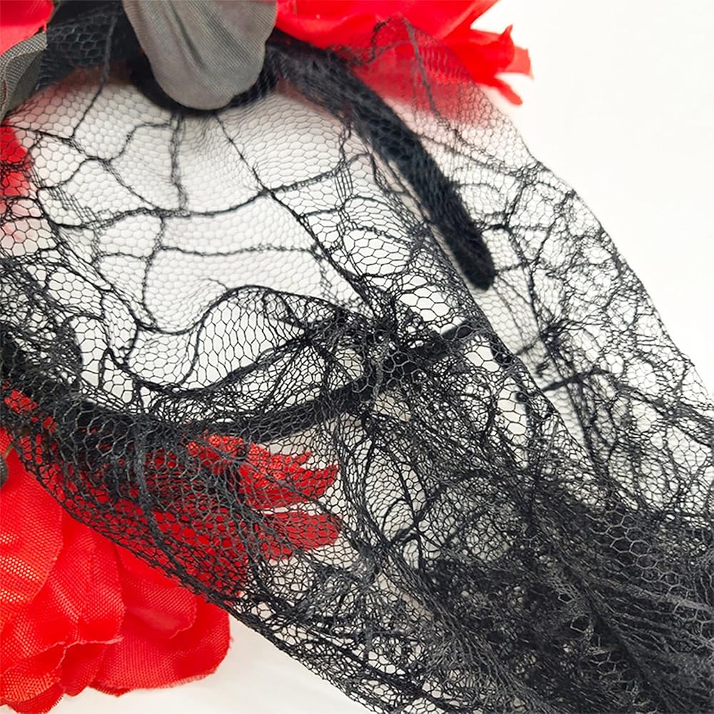 👻【خامة جيدة】- غطاء رأس حفلة الهالوين مصنوع من وشاح دانتيل عالي الجودة وزهور صناعية، صناعة متقنة، خفيف ومريح في الارتداء، سهل الارتداء والخلع، عصابة الرأس مرنة ويمكن تثبيتها بشكل جيد على رأسك. .