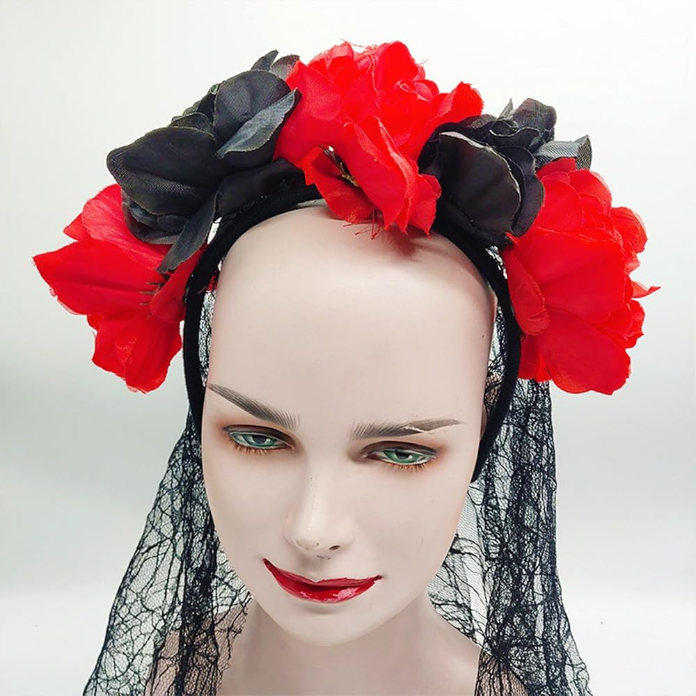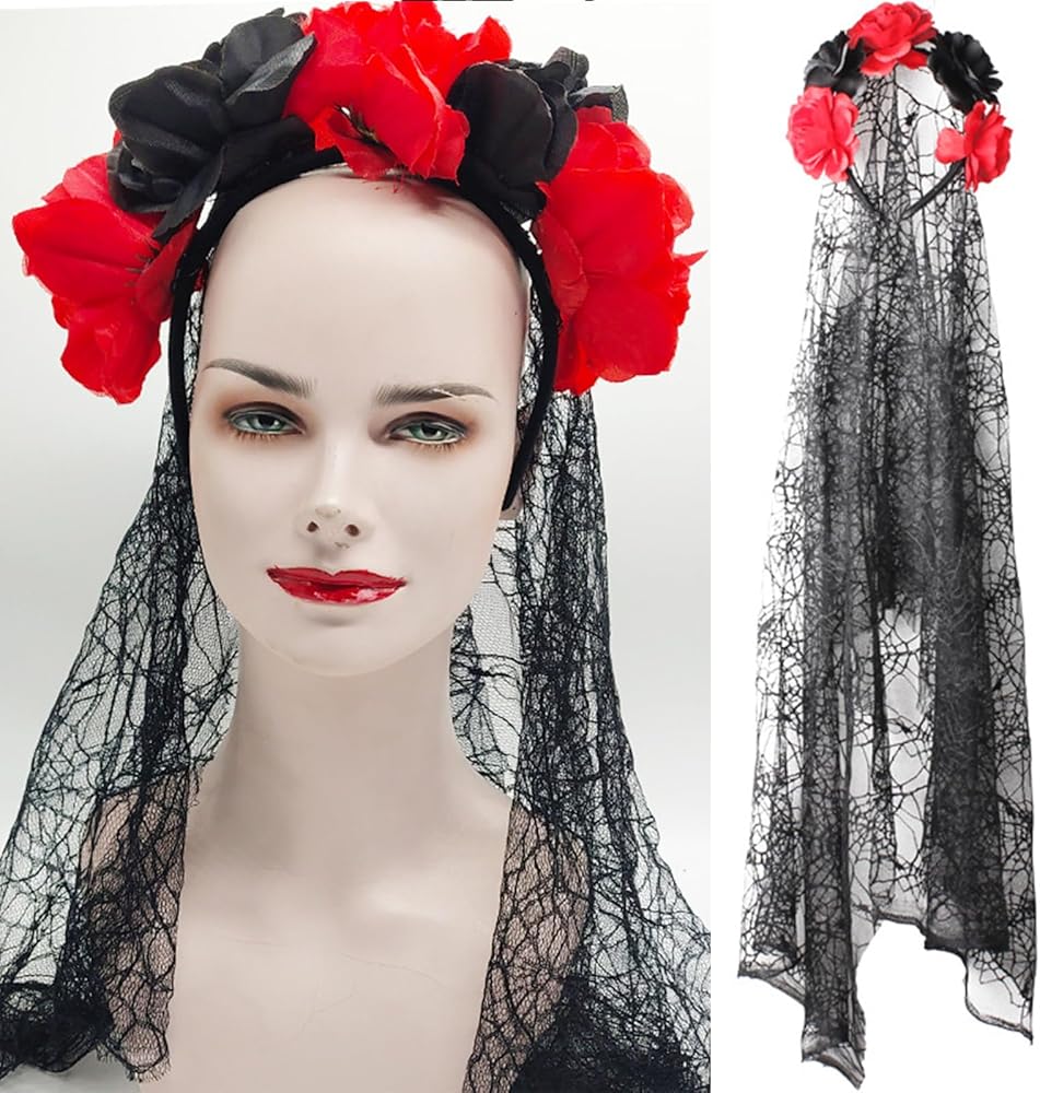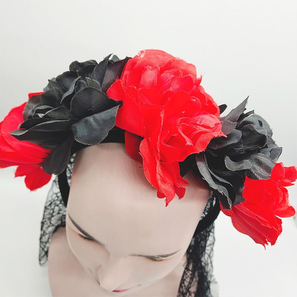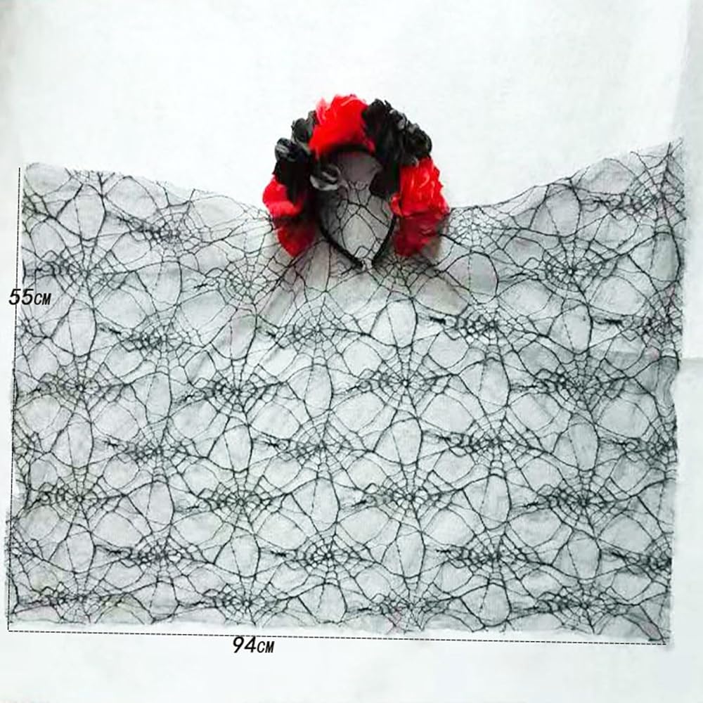 👻【خامة جيدة】- غطاء رأس حفلة الهالوين مصنوع من وشاح دانتيل عالي الجودة وزهور صناعية، صناعة متقنة، خفيف ومريح في الارتداء، سهل الارتداء والخلع، عصابة الرأس مرنة ويمكن تثبيتها بشكل جيد على رأسك. .