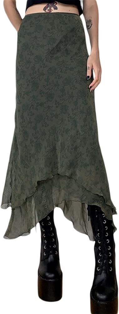 الميزة: تنورة غير منتظمة على شكل حرف A، طول الركبة منخفض، خصر مرتفع، لون موحد، ملابس نادي عصرية كاجوال للسيدات.
