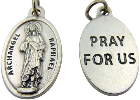قلادة L&M فضية اللون بقاعدة Archangel Saint Raphael Praray for Us Medal، 1 بوصة