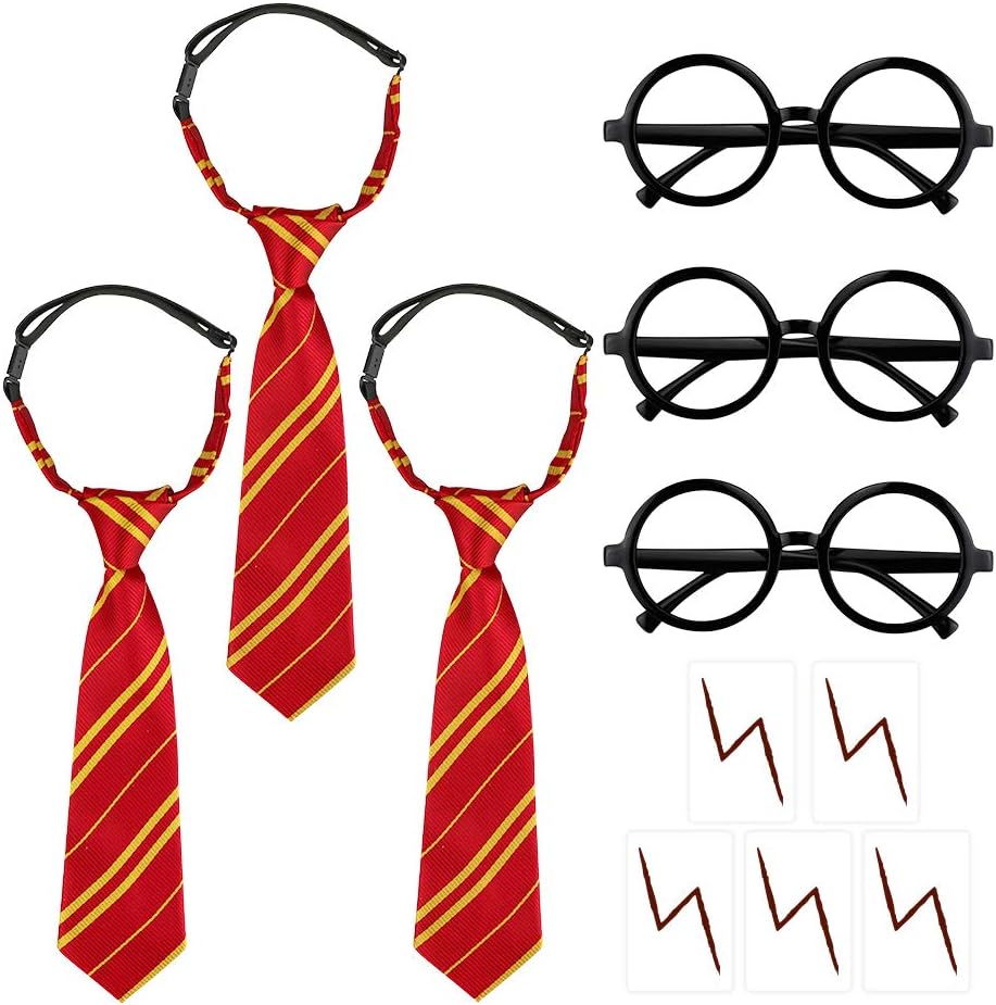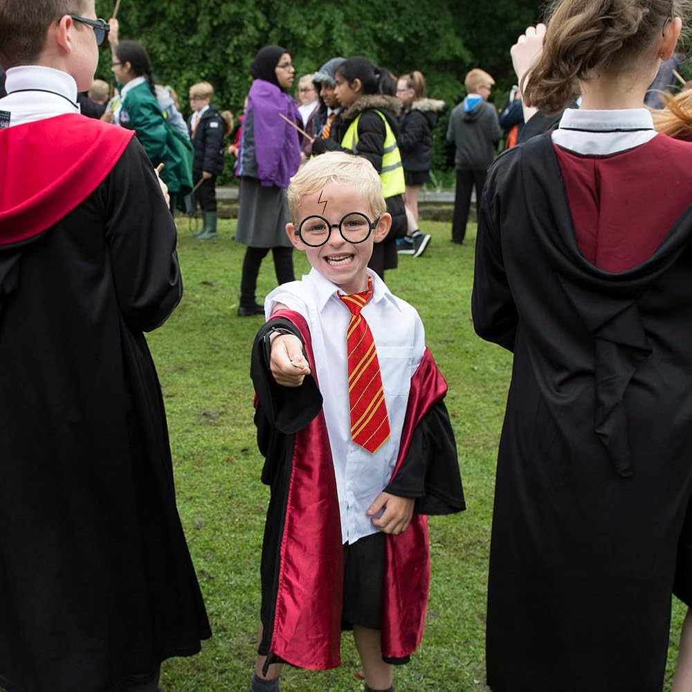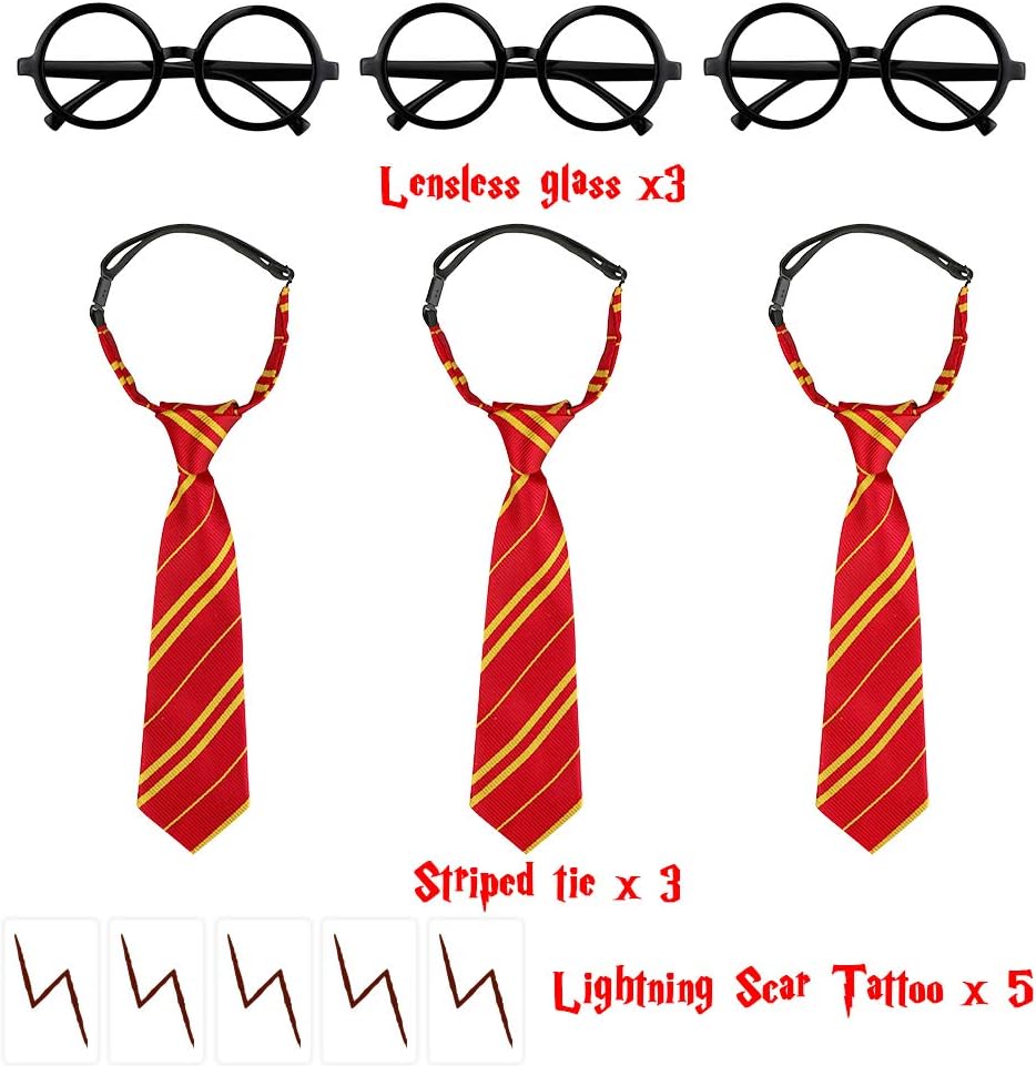 تصميم فريد من نوعه - يختلف عن الآخرين، لدينا تصميمنا الخاص للربطات المخططة، كل ذلك في مجموعة واحدة، لا حاجة لأطفالك لجعلها أكثر تعقيداً! النظارات ذات العدسات والربطات المخططة هي الإكسسوارات المثالية لإكمال زي الساحر الخاص بك كساحرك المفضل مع هذه الإكسسوارات لالتقاط صور السيلفي الممتعة والتقاط الصور، مثالية لحفلات أعياد الميلاد التي تحمل طابع الساحر وللعب الأدوار.