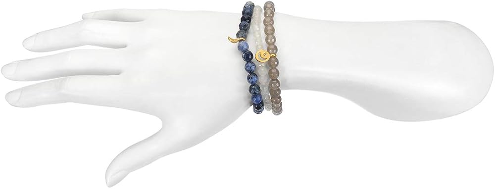 مجموعة أساور حريمي سوداليتي وعقيق رمادي، حجر اليشم الأبيض الذهبي قمر من Satya Jewelry