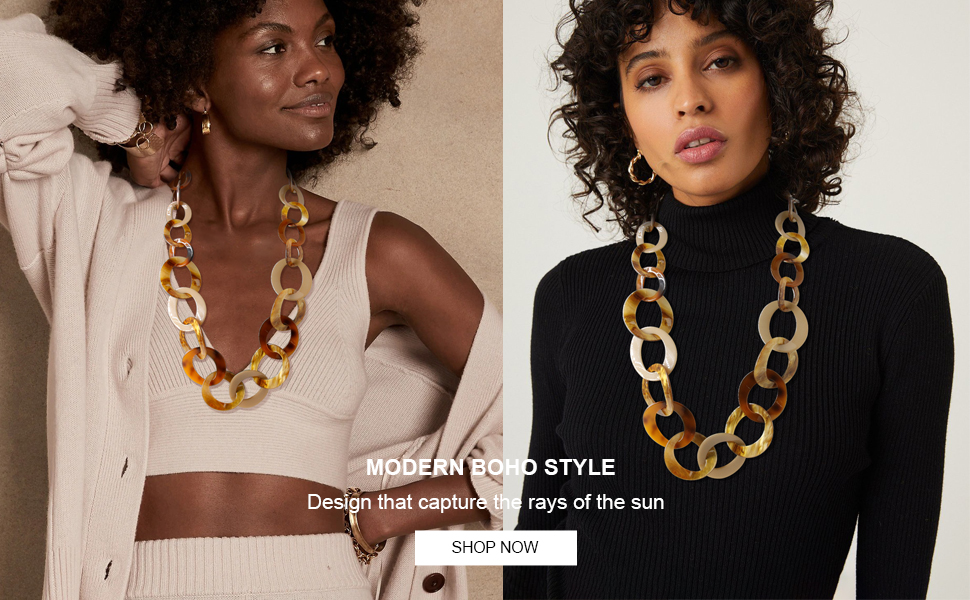 • ♥ نمط بوهو عصري: من المؤكد أن هذه القلادة المصنوعة من الأكريليك الجريئة والجميلة والعصرية بنمط بوهو ستظهر بمظهر رائع. اللون البيج والبني يجعل هذه القلادة متعددة الاستخدامات للارتداء مع أي ملابس.