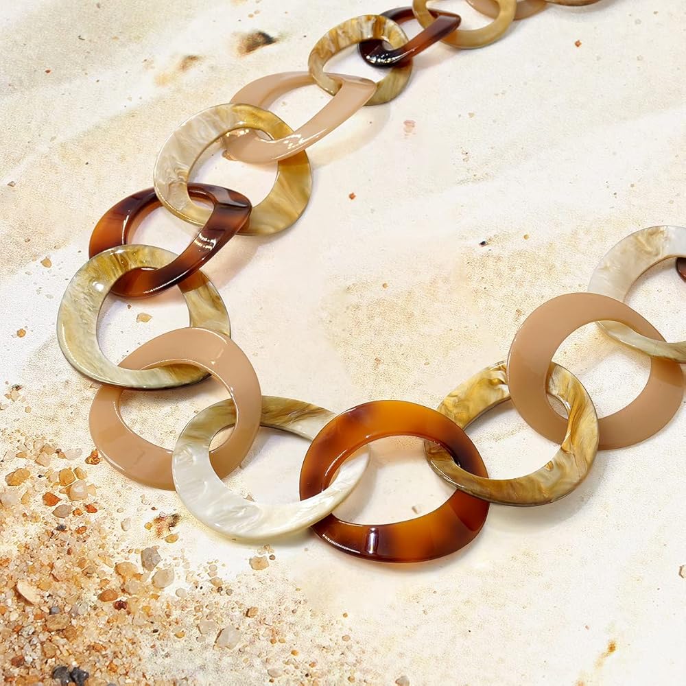 مويان عقد اكريليك مكتنز مصنوع يدويا بلون بيج وبني للنساء، سلسلة طويلة ملفوفة بنمط بوهو خفيف الوزن، مجوهرات عصرية، هدايا مجوهرات عصرية، ستانلس ستيل، بدون احجار كريمة, ستانلس ستيل, لا أحجار كريمة