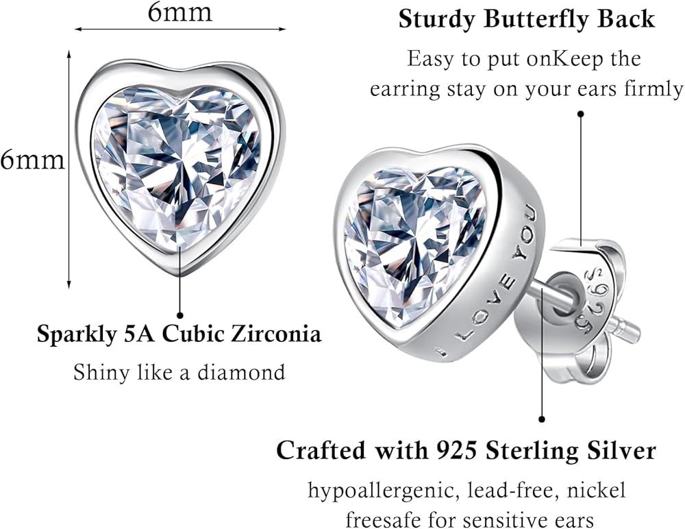 ❤ PERFECT GIFT -- The stud earrings with heart shape CZ design will be never out of fashion. They are lettering "I LOVE YOU" and well wrapped with a tin box. Perfect gift at Christmas, Valentine's Day, Mother's Day, Anniversary, Graduation, etc to show your love to your wife, children, parents, best friend.