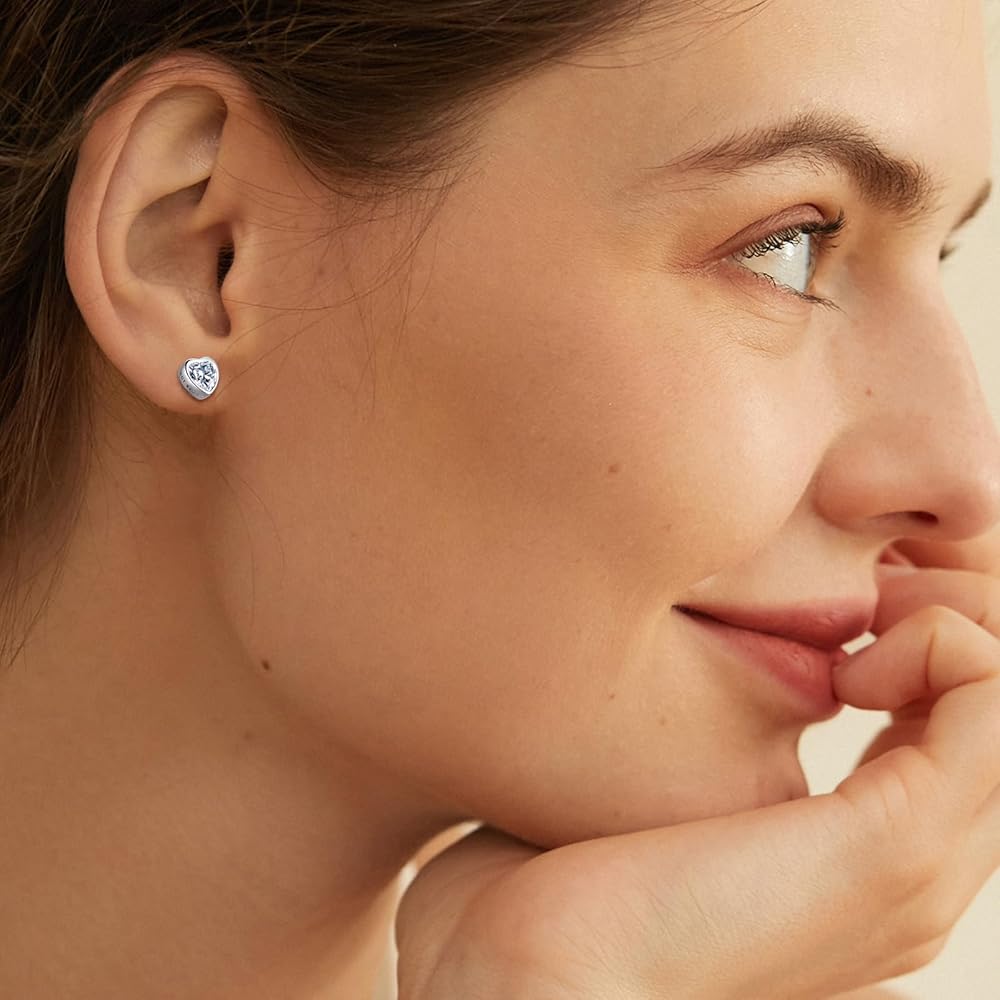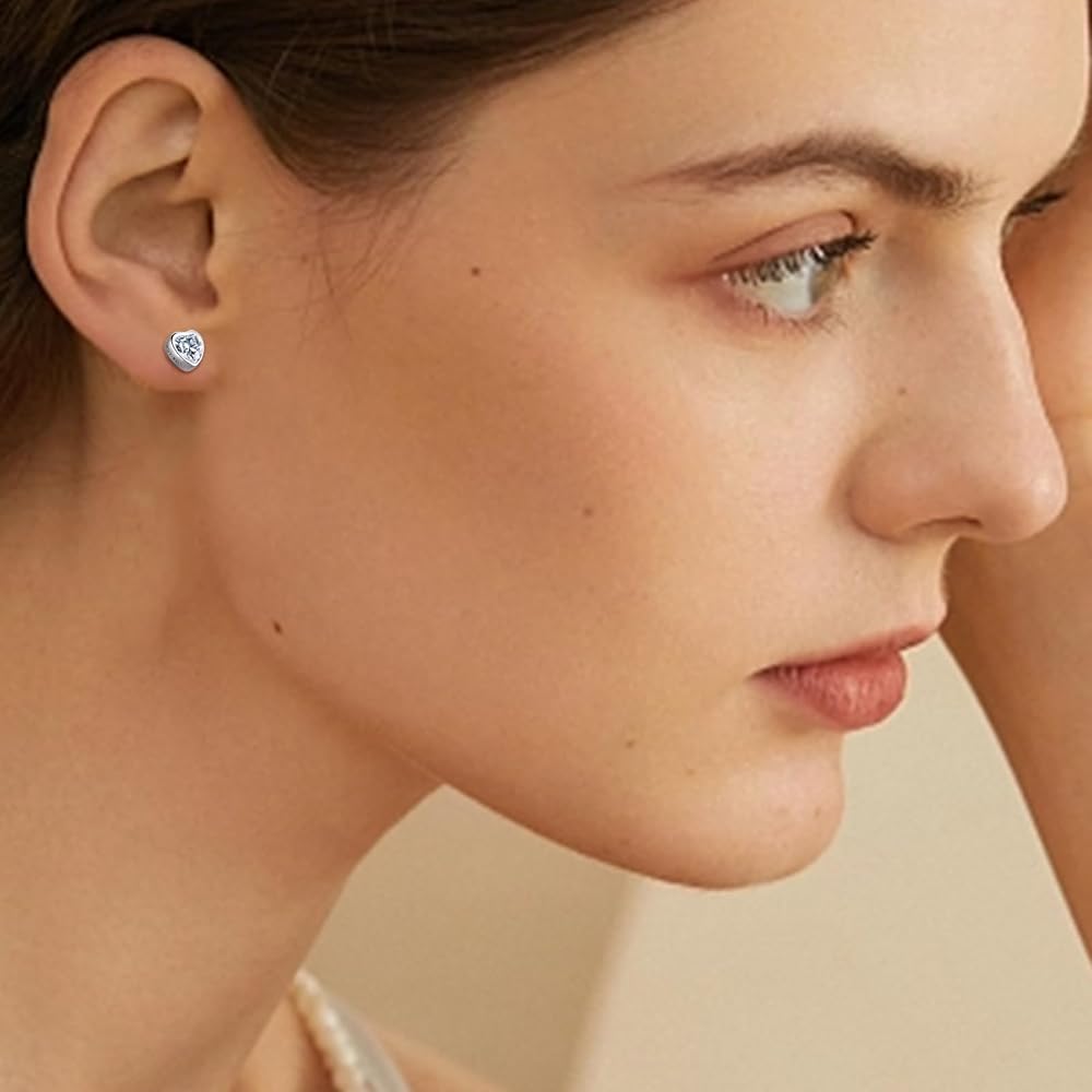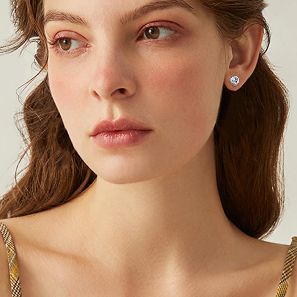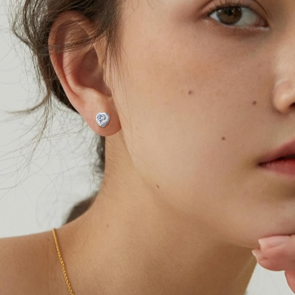 ❤ HYPOALLERGENIC 925 STERLING SILVER -- These small heart stud earring is made of 925 sterling silver post. High Polished, 14K White Gold Plated. Nickel-free, Hypoallergenic, and Shiny Forever. Perfect to keep as a Daily Jewelry. Our silver stud earrings are suitable for almost all Of Sensitive Ears.