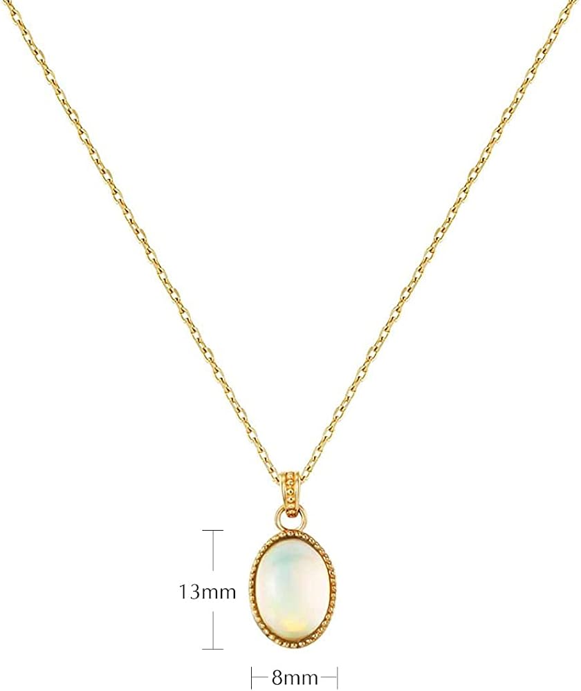 FANCIME 14K سلسلة قلادة من الذهب الأصفر الحقيقي مع أوبال طبيعي حقيقي 1 قيراط بيضاوي أساسي الحد الأدنى قلادة مجوهرات أصلية هدايا عيد ميلاد الذكرى السنوية للنساء الفتيات، الطول: 16+2 بوصة