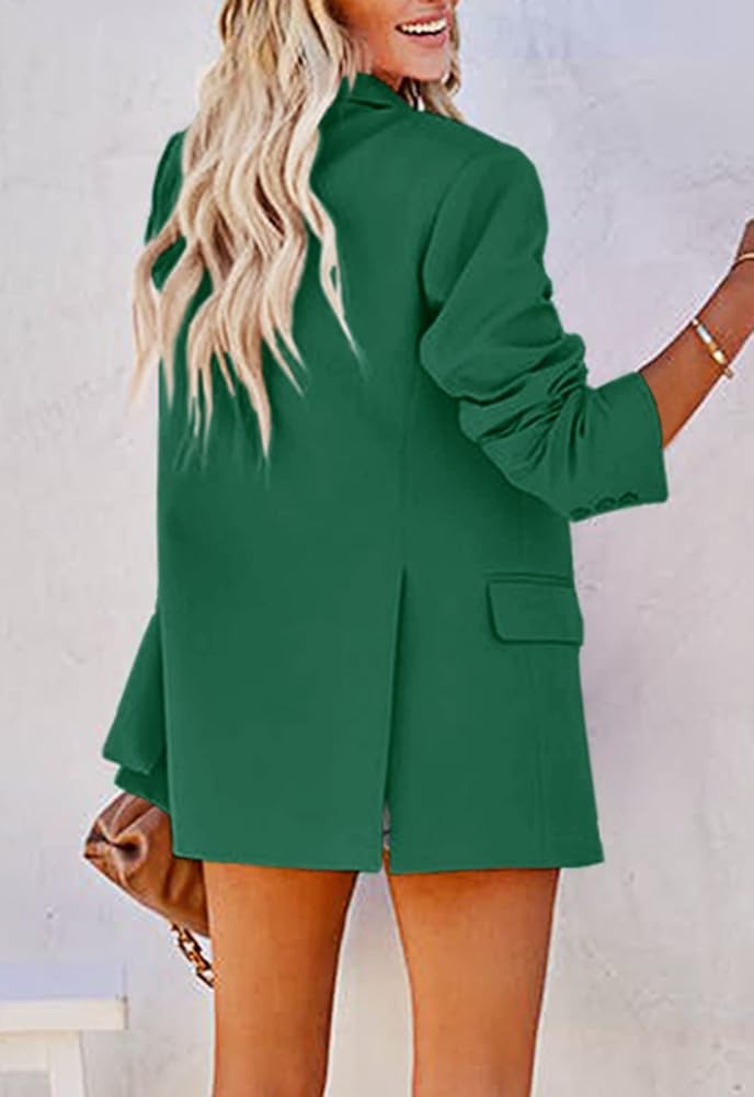 المزايا: بليزر كاجوال للنساء، مفتوح من الأمام، جاكيت بليزر أساسي بياقة مطوية، تصميم بأزرار أمامية، أكمام طويلة، جيبان عمليان، أكتاف مبطنة ومبطنة تمنحك مظهرًا أكثر رسمية ومنظمة.