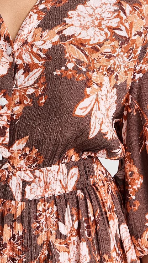 طبعة زهور، وأكمام بطول 3/4 مع أطراف أكمام مرنة
