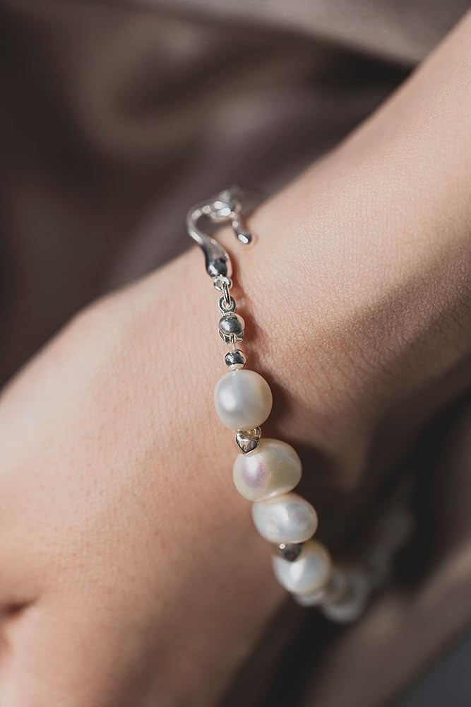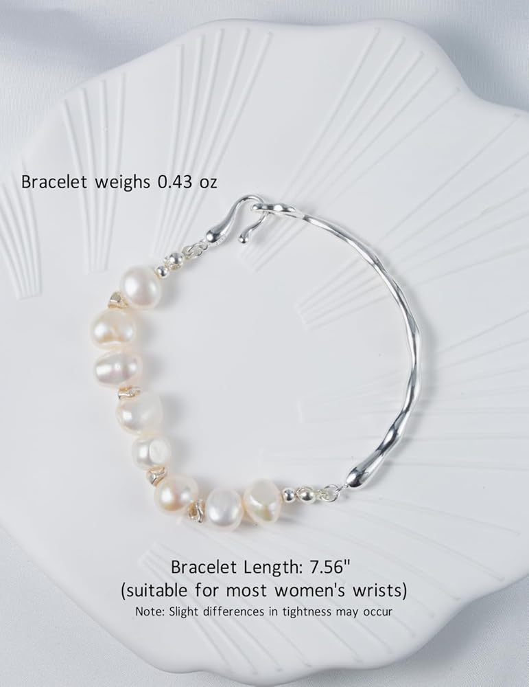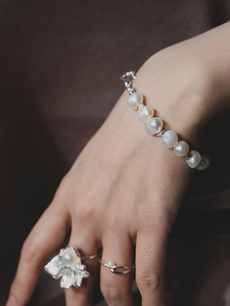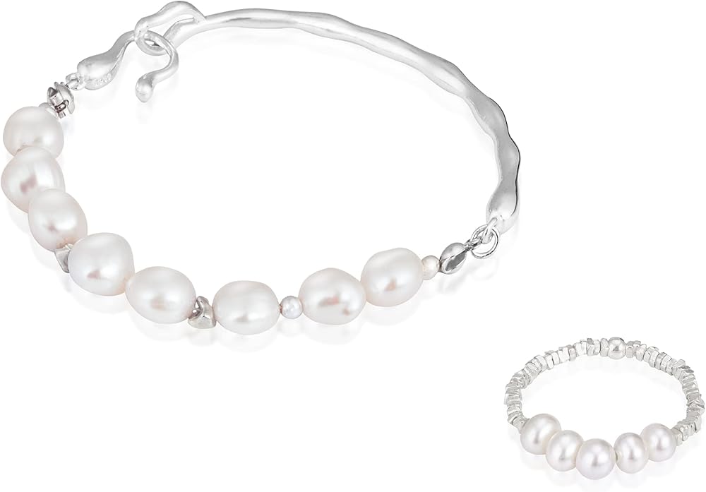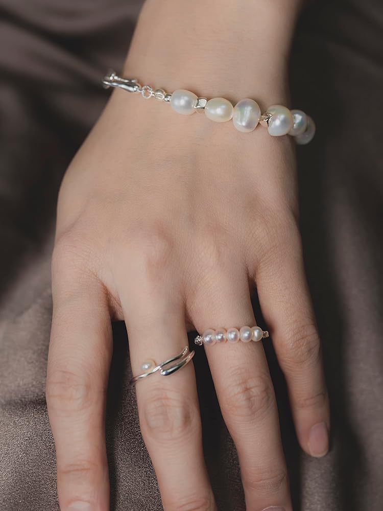 N9NEMUSES DIY pearl collection jewelry set includes a pearl bracelet and an elastic pearl ring. The designer combines white baroque pearls with rigid bangles or geometric elements to create pearl jewelry sets that combine rigidity and softness, which is elegant without losing personality. [Bracelet] Dainty and elegant: Combining clear and bright baroque pearls with a chic rigid wave bangle and featuring a distinctive fishhook clasp, this link bracelet is sure to be a unique and memorable addition to your jewelry box. [Ring] Simple and graceful: This elastic ring combines pearls and square silver blocks in a small and elegant way that will add sparkle to any outfit and is perfect for everyday wear. N9NEMUSES adopts high-quality sterling silver material and unique designs to create elegant and anti-allergy jewelry for women. We believe that the set of pearl jewelry can add fun and cuteness to your outfit. In addition, we have prepared high-end gift box packaging for you. It is a good choice to gift sterling silver bracelets and rings set for women to your daughters, friends, girlfriend, and sisters. Whether at regular times or festivals, this sterling silver ring and bracelet set will be the best gift to express your blessing or love.