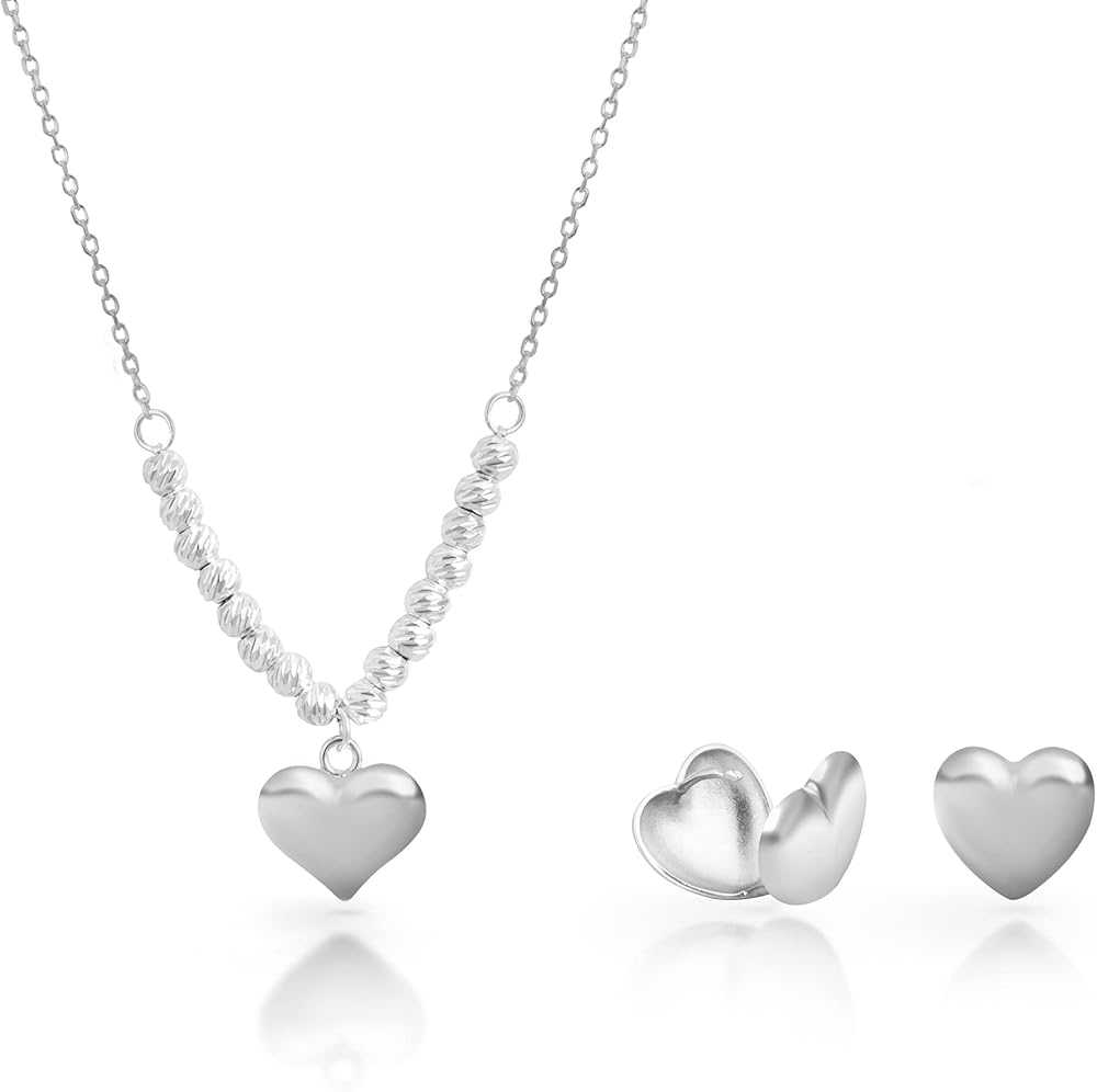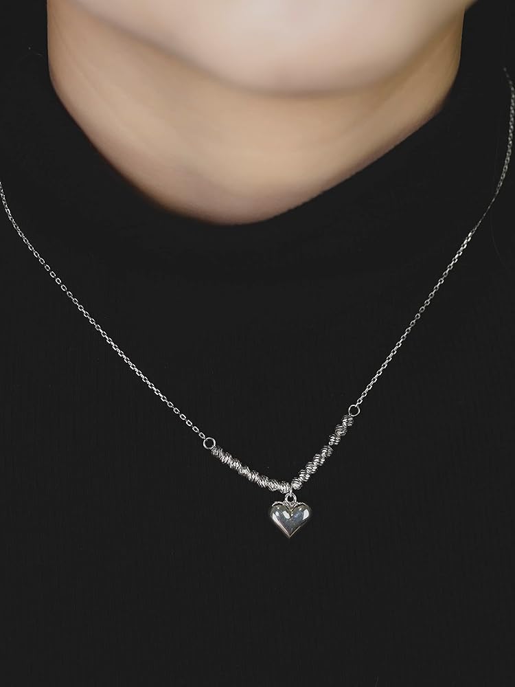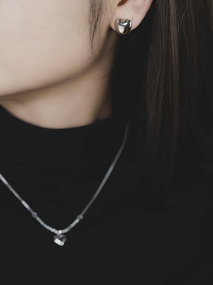 Minimalist and lovely: The dainty heart stud earrings feature a hollow design, and the heart necklace combines a cute charm with round beads on a classic cable chain. The sterling silver heart jewelry set is simple and comfortable for daily wear