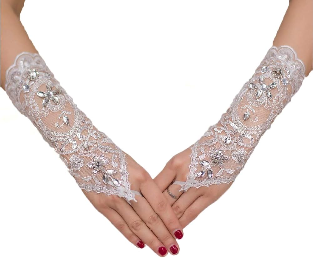 هذه القفازات الأنيقة من الدانتيل مطاطية. إنها مثالية تمامًا للعرائس ووصيفات العروس والحفلات الراقصة وأي مناسبة رسمية مثل يوم الزفاف أو المناسبات المسائية أو عروض الأداء.