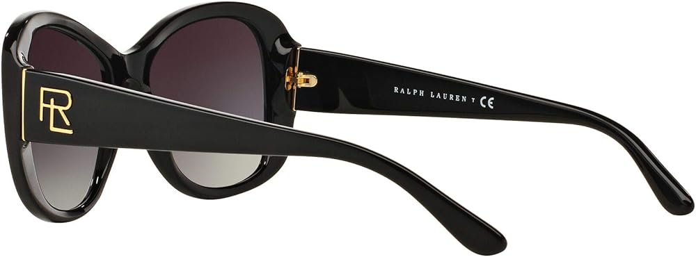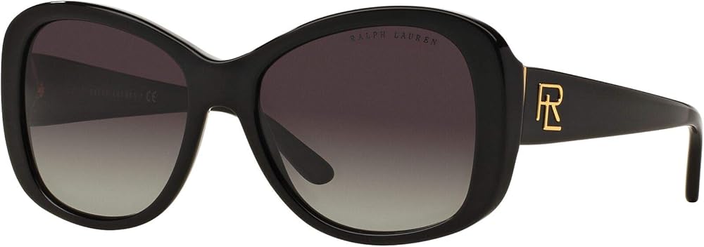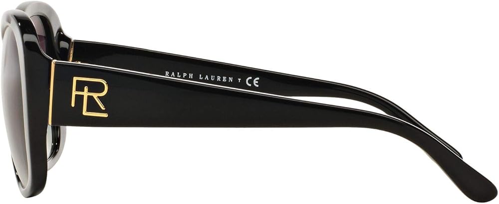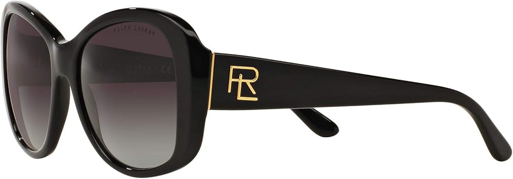 نظارة شمسية مستطيلة RL8144: تتميز هذه النظارات الشمسية رالف لورين بإطار مستطيل عريض كبير الحجم مع أذرع متباينة مزينة بشعار RL معدني وعدسات رمادية متدرجة.