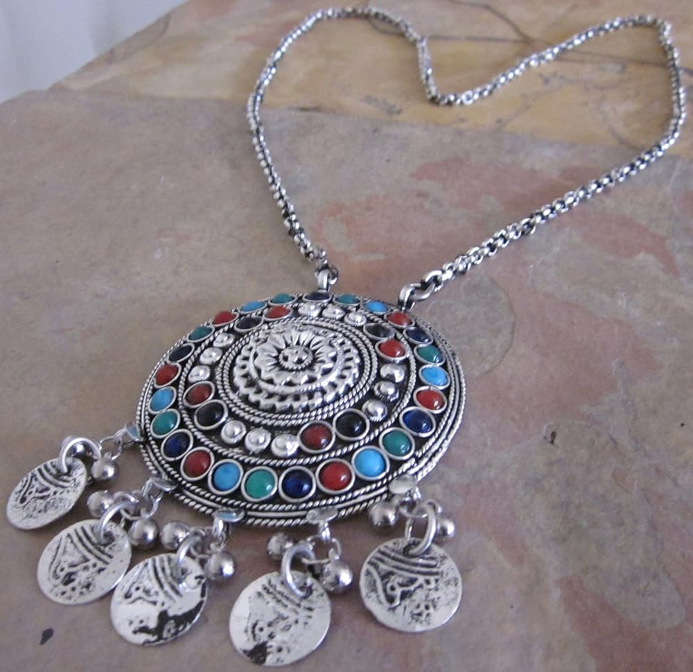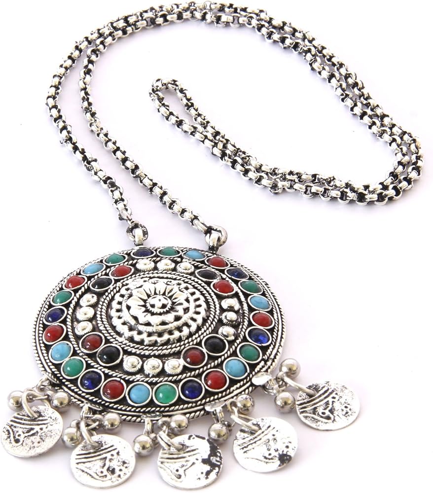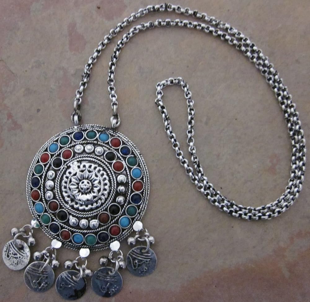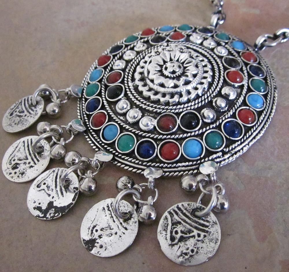 سترة إنديا ستوب مصنوعة يدوياً من مجوهرات عصرية بوهو قلادة طويلة قلادة قلادة على شكل قبائل أفغانية هدية مهرجان الغجر القبائلي, معدن غير ثمين