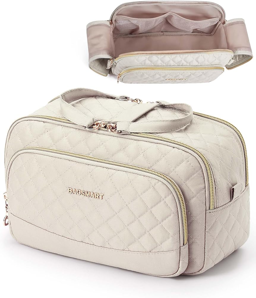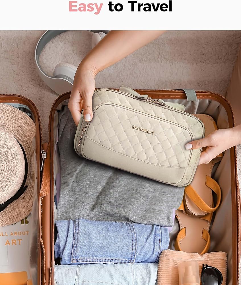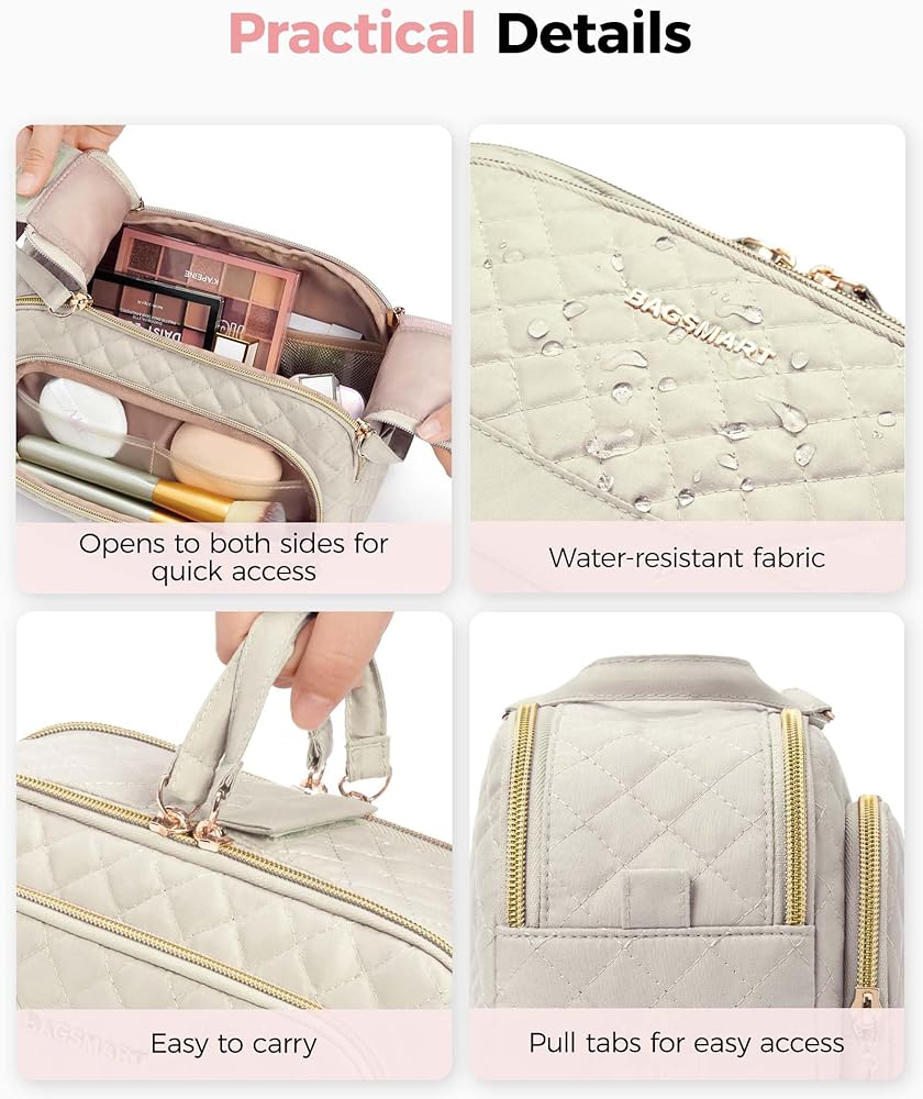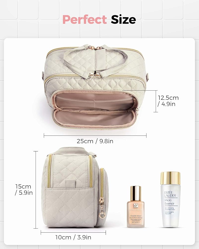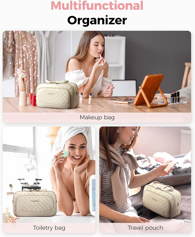 متعددة الوظائف: حقيبة مستحضرات التجميل الأنيقة هذه متعددة الاستخدامات، وتخدم أغراضًا متعددة كحقيبة مستحضرات تجميل للسفر، أو حقيبة أدوات الزينة، أو منظم ملحقات السفر. تصميمها خفيف الوزن يسمح بوضعها بسهولة في حقائب السفر أو حقائب الظهر، مما يجعلها رفيقًا مناسبًا للسفر أو رحلات العمل. إنه إكسسوار سفر ممتاز وخيار هدية مبهج للنساء.