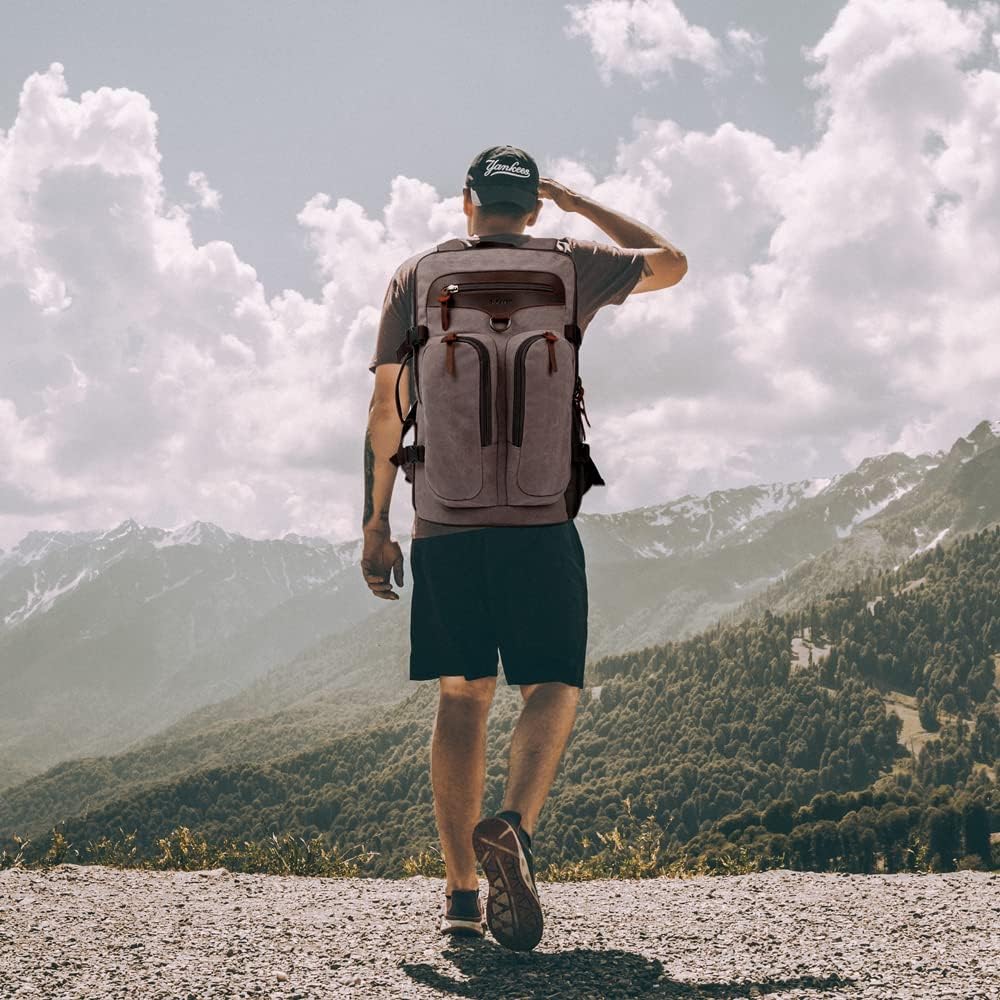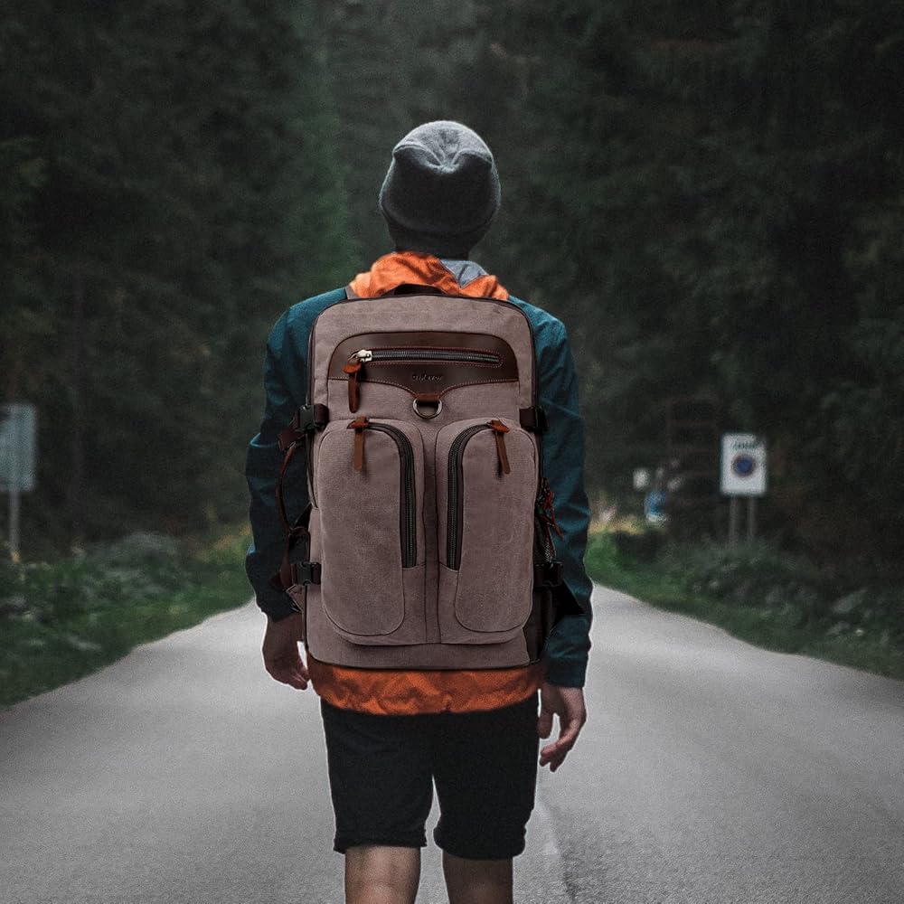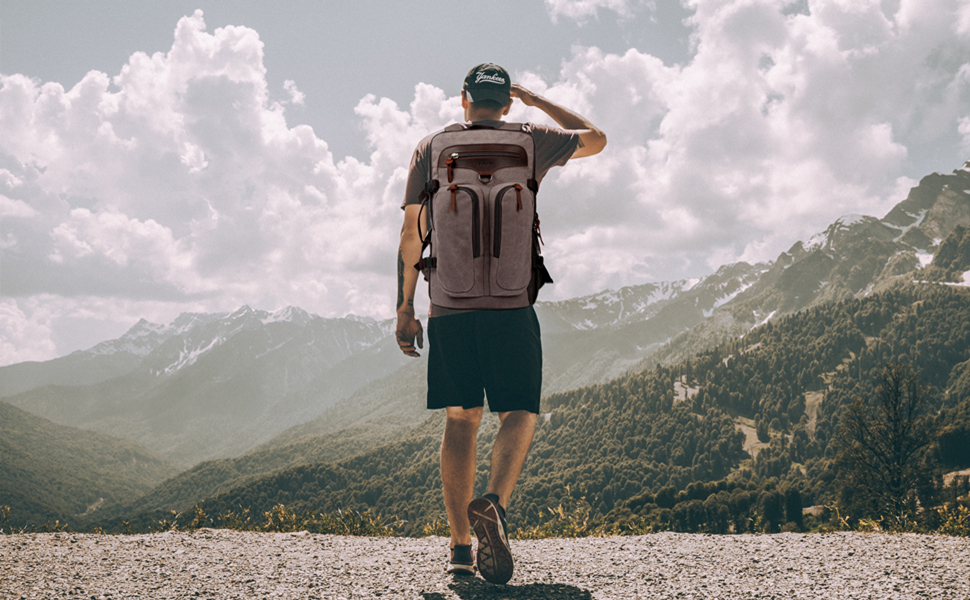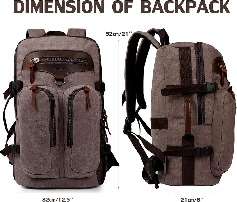★ مواد عالية الجودة ومتينة. حقيبة الظهر للسفر هذه مصنوعة من قماش متين وجلد أصلي. ويمكنها تحمل وزنًا أكثر من حقيبة الظهر العادية. انتبه إلى التفاصيل، وبطانة عالية الجودة، وجميع السحابات والأزرار مصنوعة من معدن عالي الجودة، متين، حقيبة ظهر أنيقة للرجال والنساء.