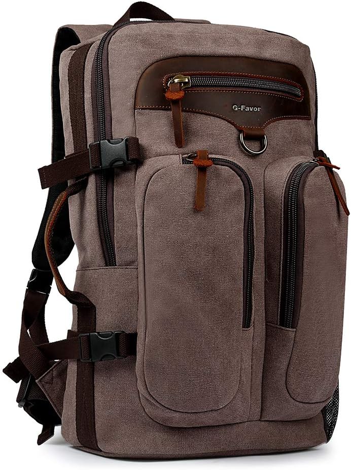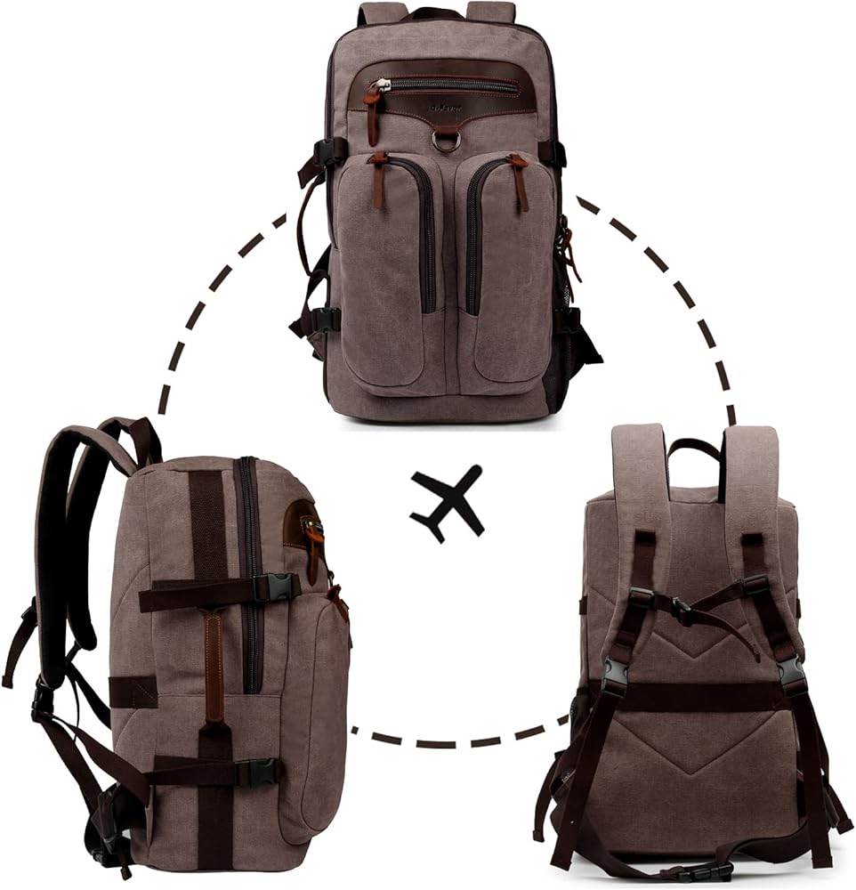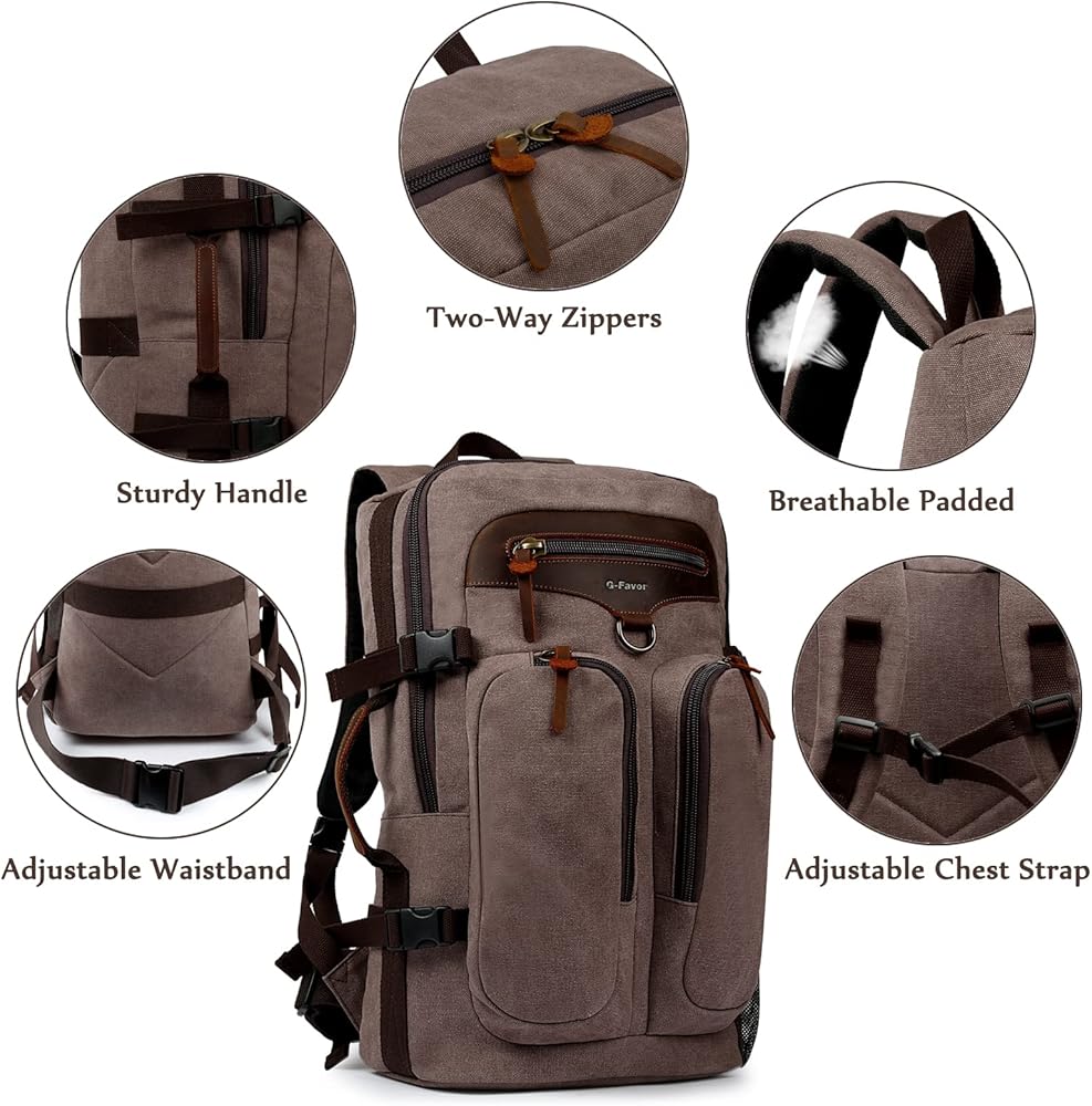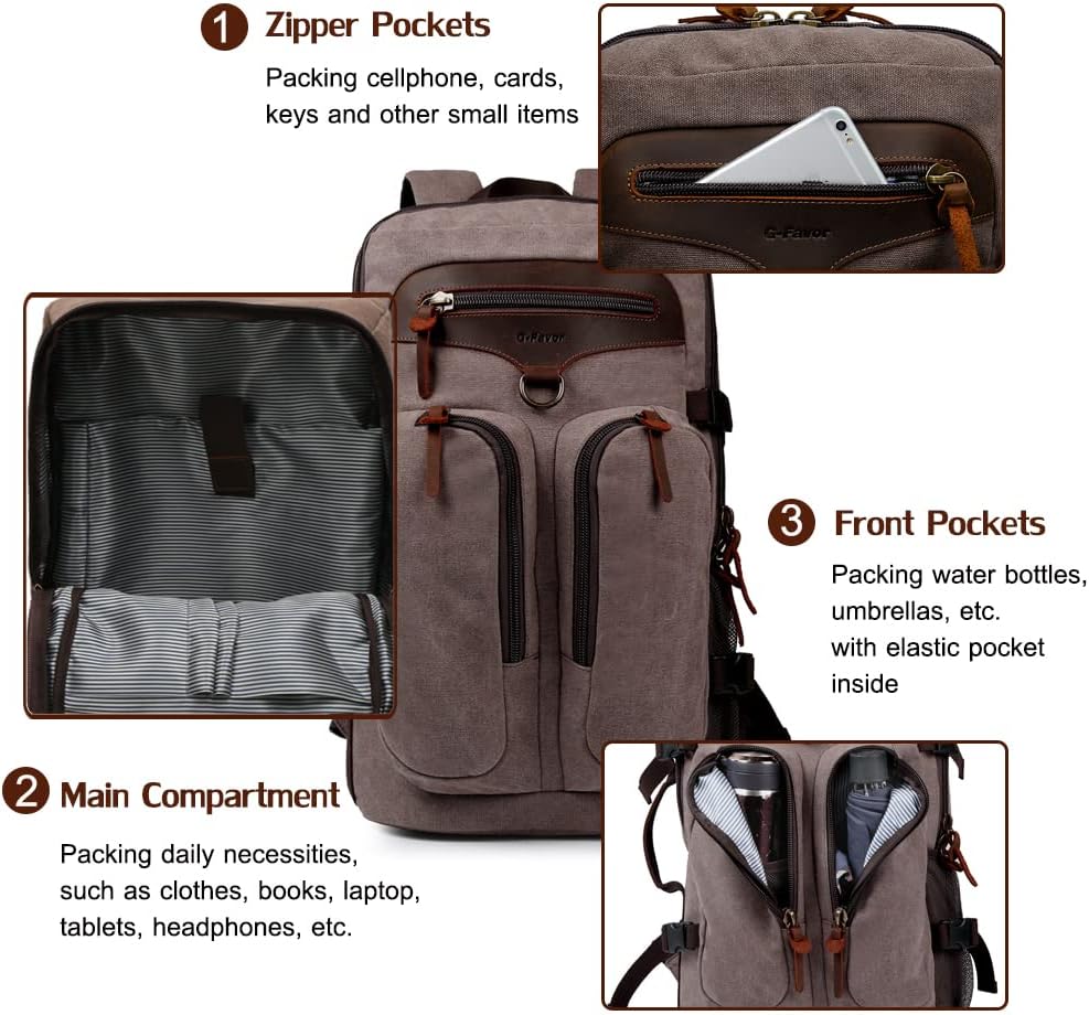★ مواد عالية الجودة ومتينة. حقيبة الظهر للسفر هذه مصنوعة من قماش متين وجلد أصلي. ويمكنها تحمل وزنًا أكثر من حقيبة الظهر العادية. انتبه إلى التفاصيل، وبطانة عالية الجودة، وجميع السحابات والأزرار مصنوعة من معدن عالي الجودة، متين، حقيبة ظهر أنيقة للرجال والنساء.