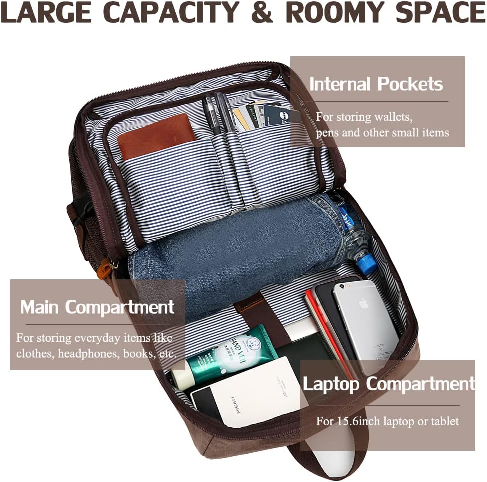 ★ سهل الحمل. حقيبة ظهر الكمبيوتر المحمول العتيقة سهلة الحمل بسبب أحزمة الكتف القابلة للتعديل وأشرطة الصدر وحزام الخصر ولوحة الظهر المريحة. تم ضبط مقبضين على الجزء العلوي وجانب حقيبة الظهر هذه للكمبيوتر.