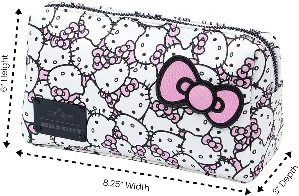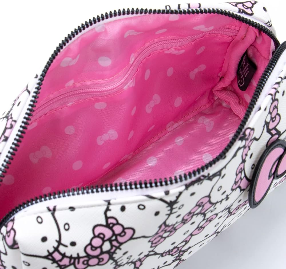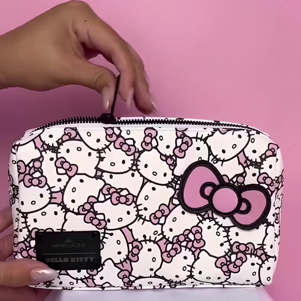 🎀 𝐄𝐍𝐎𝐔𝐆𝐇 𝐂𝐀𝐏𝐀𝐂𝐈𝐓𝐘: تتميز حقيبة مكياج Hello Kitty بحجرة كافية لصندوق مكياجك الصغير ومرآة مدمجة وفرش مكياج وغيرها من الملحقات. جيب داخلي بسحاب وجيب منزلق إضافي في الخلف يجعل حقائب مستحضرات التجميل غير عادية