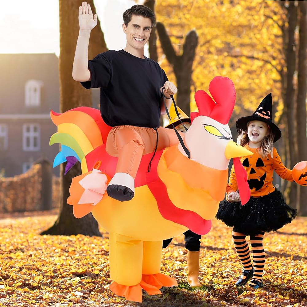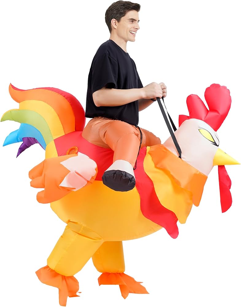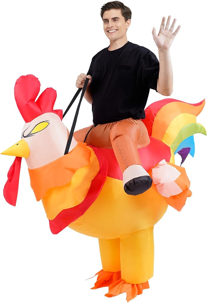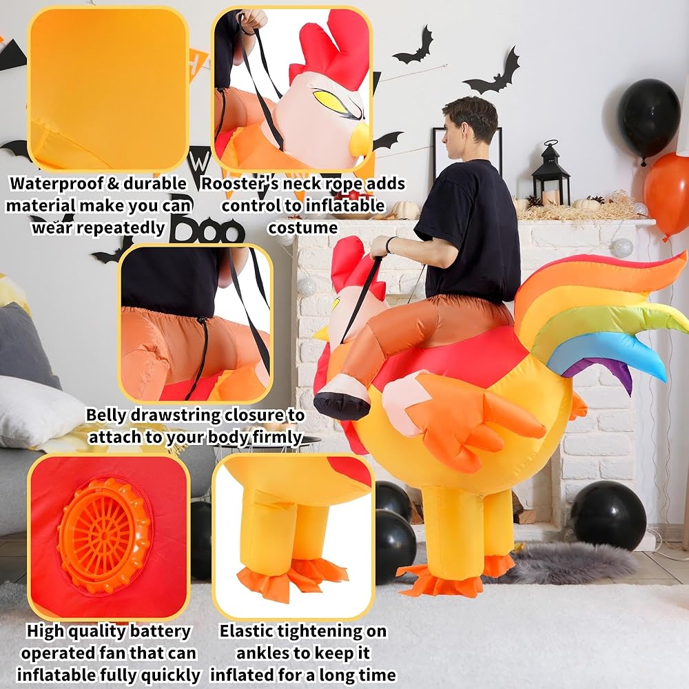 زي الدجاجة القابلة للنفخ من Frojuly للبالغين، بدلة الديك المنفوخة للهالوين، أزياء ركوب الحيوانات المضحكة للرجال والنساء