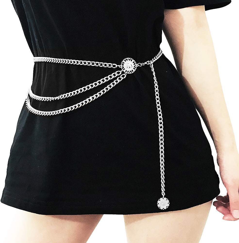 جوركسي سبيكة خصر سلسلة متعددة الطبقات جسم سلسلة ذهبية الخصر حزام قلادة سلسلة بطن للنساء قابل للتعديل صدرية للجينز فساتين - فضي نمط 1