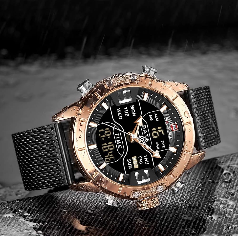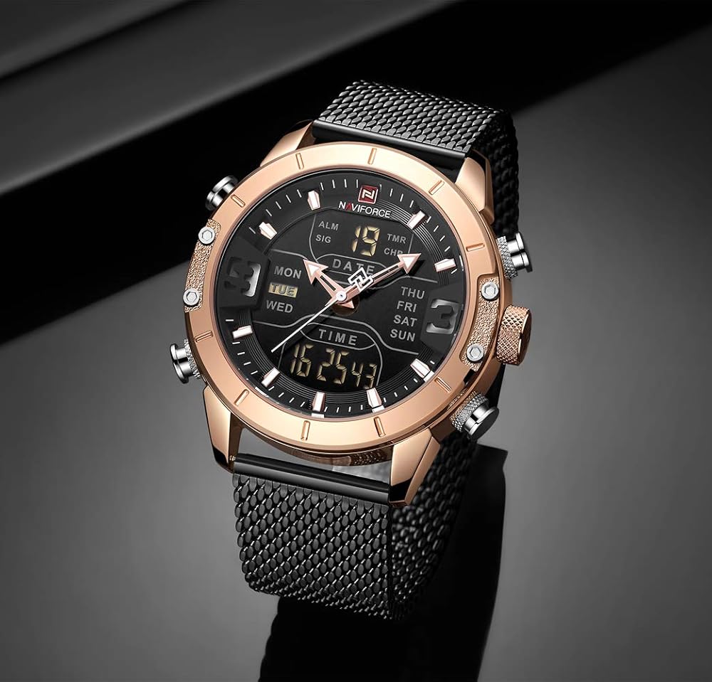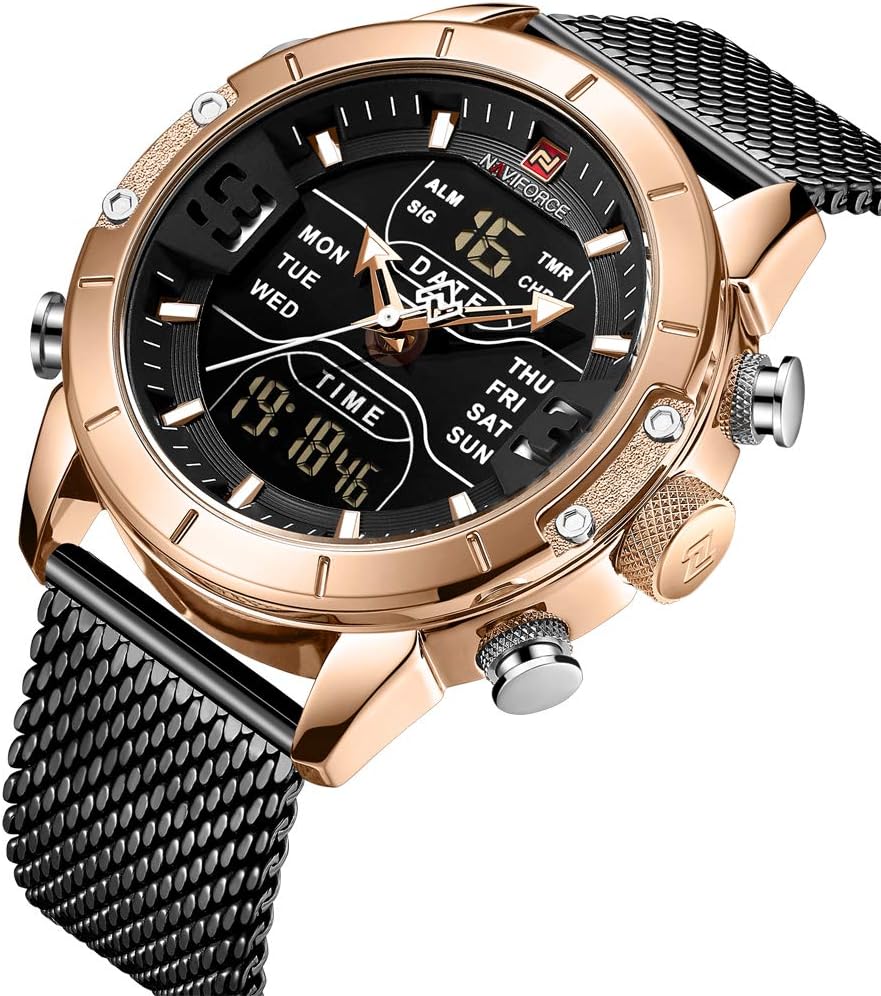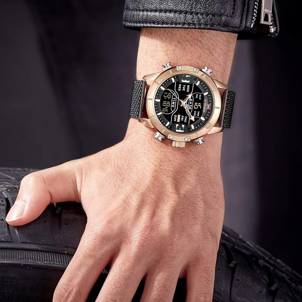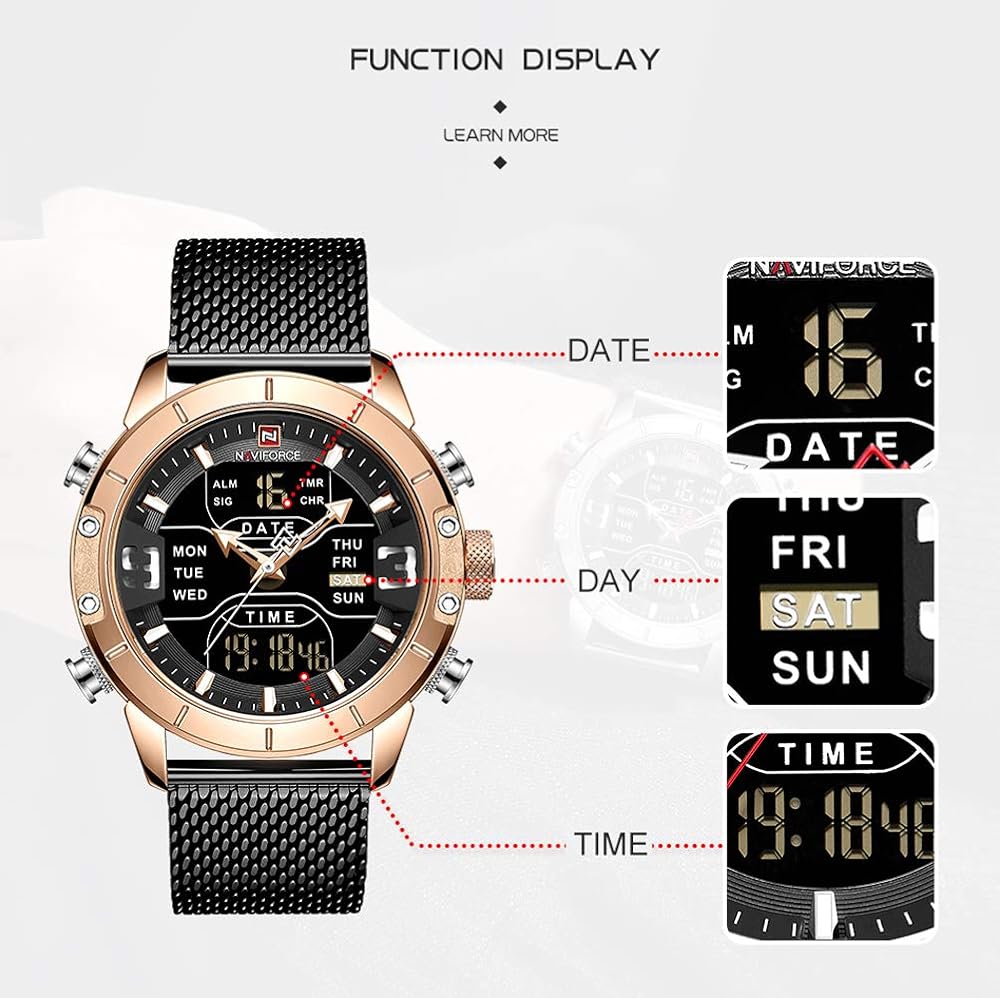 ⚡تصميم متعدد الوظائف: جميع أعمال الأقراص الصغيرة، وساعة التوقف، والكرونغراف، واليوم، والتاريخ، وحزام شبكي قابل للتعديل من الفولاذ المقاوم للصدأ يجعل الارتداء مريحًا