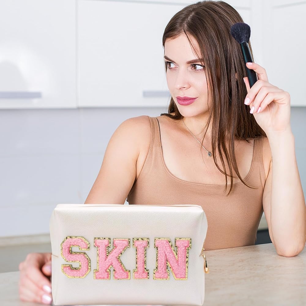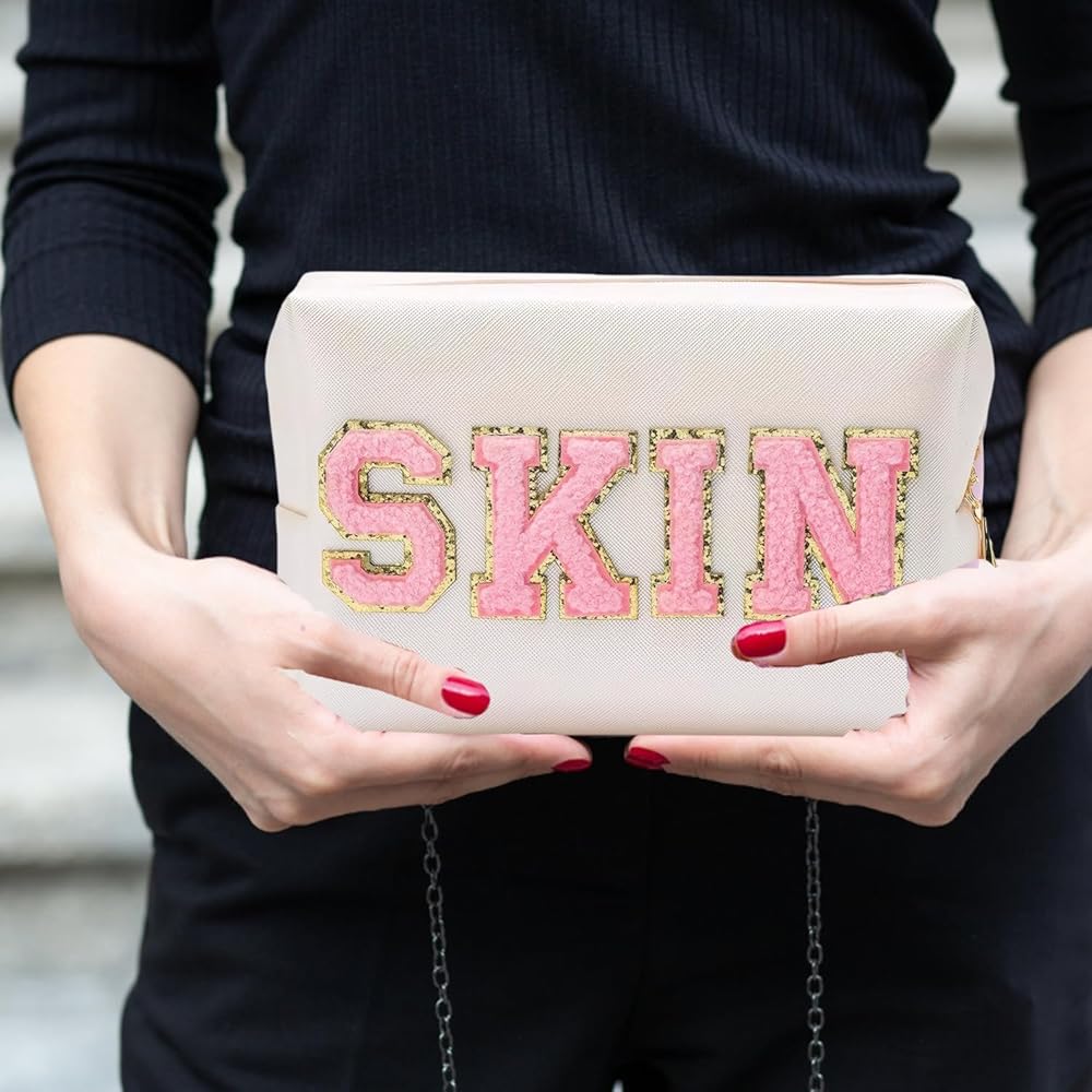 [حقيبة FASHION PREPPY STUFF] مصممة برقع حروف لامعة على الحواف "STUFF"، حقيبة المكياج الوردية هذه ملفتة للأنظار وتخلق جوًا عصريًا وحيويًا. يمكن استخدامها ليس فقط كحقيبة أدوات تجميل خاصة بك في الداخل، ولكن أيضًا كمساحة تخزين محمولة. حقيبة ردور.