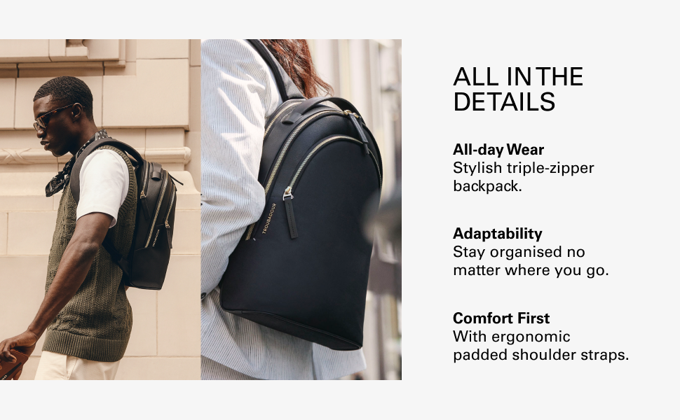 MADE FROM SUSTAINABLE MATERIALS: Our Momentum Backpack is crafted from recycled polyester fabric, recycled polyester lining and vegan leather trim. We package every item in recycled materials, ensuring you carry both style and a reduced carbon footprint.