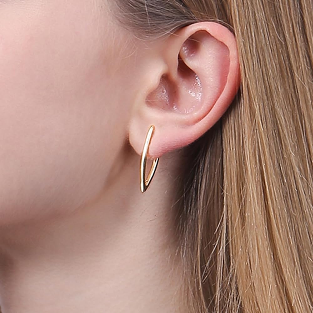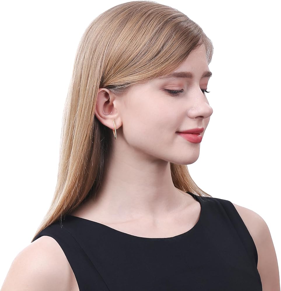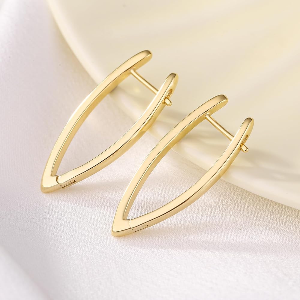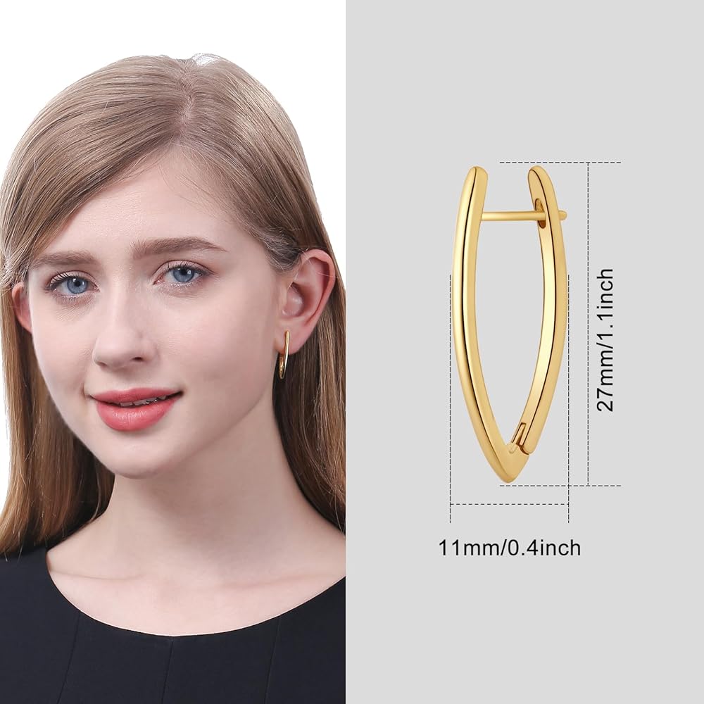 【Size & Weight】:Small gold hoop earrings, 27mm*11mm each earring weighs only 2.75 grams, all materials are hypoallergenic.Lightweight and firm, light exercise will not fall off,the ears are comfortable wear for a day.