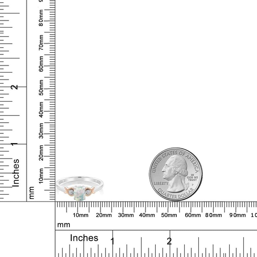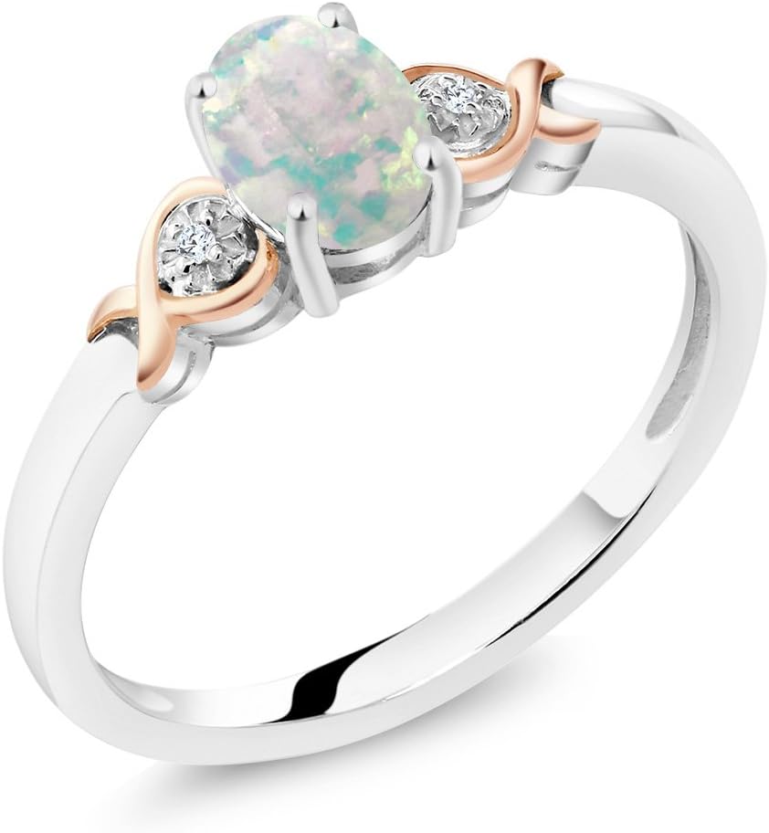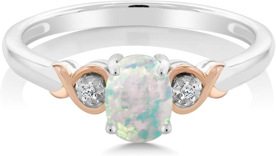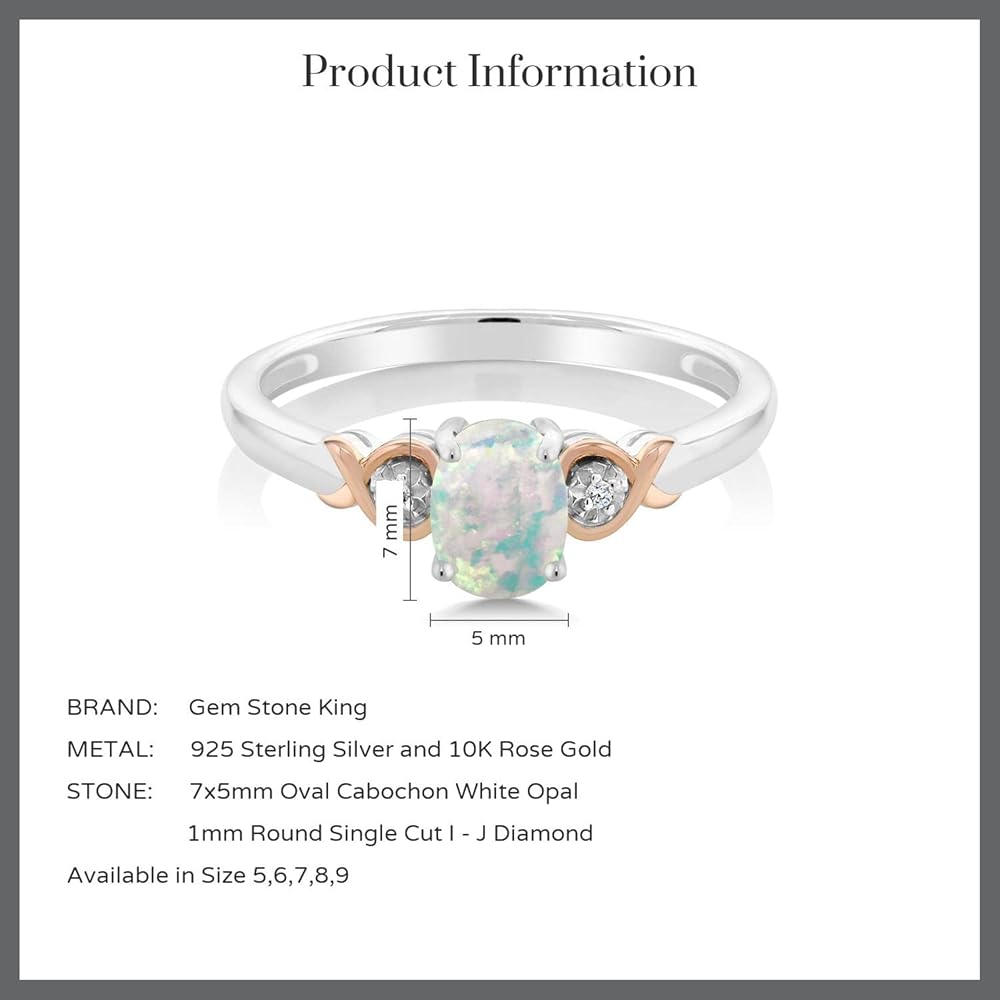 خاتم Gem Stone King من الفضة الإسترليني عيار 925 والذهب الوردي عيار 10 قيراط والأوبال الأبيض مع خاتم ألماس للنساء (0.63 قيراط، حجر ميلاد الأحجار الكريمة، متوفر بمقاس 5، 6، 7، 8، 9)