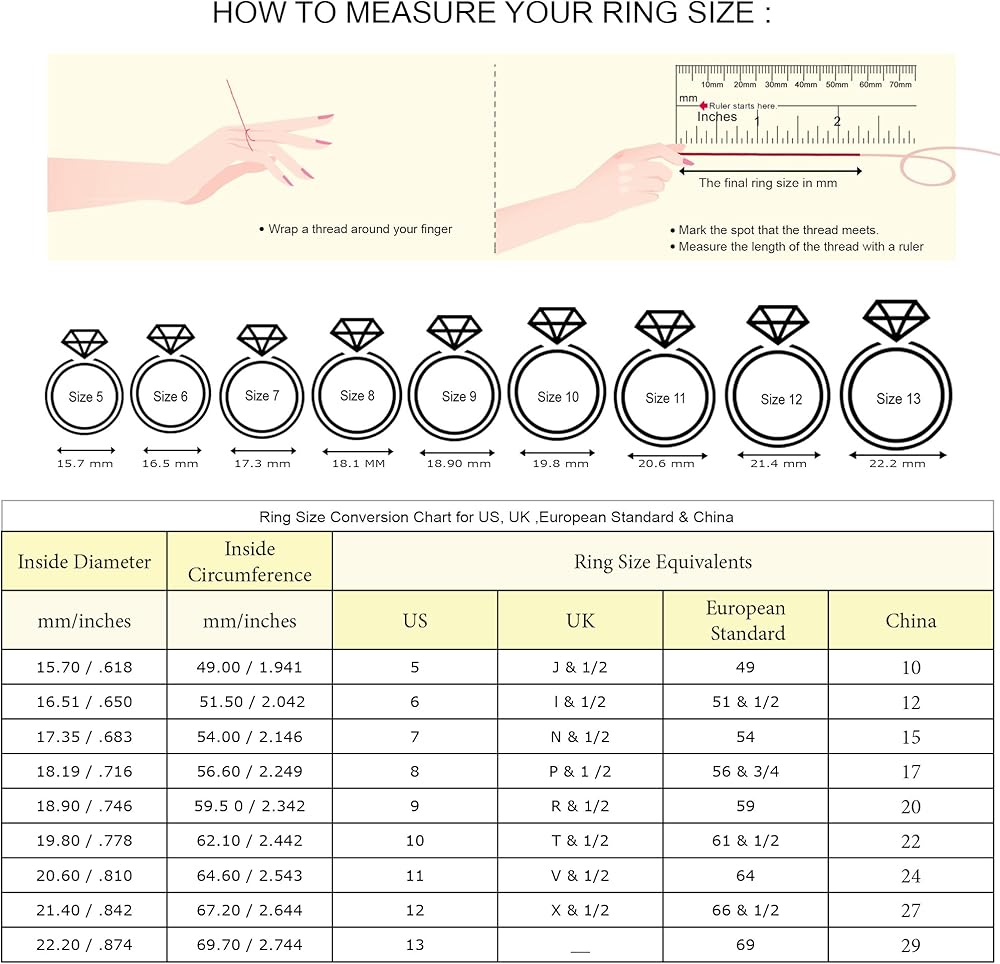 - متوفر بمقاسات متعددة: هذا الخاتم متوفر بمقاسات 5 و6 و7 و8 و9، مما يضمن ملاءمة مريحة وآمنة لمجموعة واسعة من أحجام الأصابع.