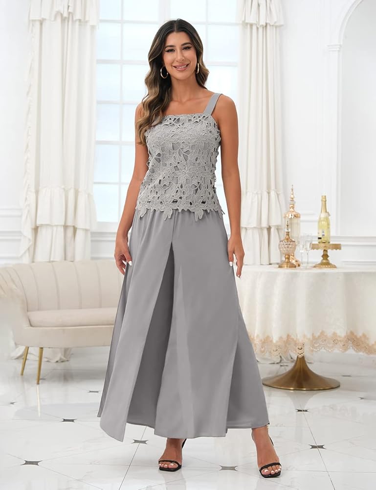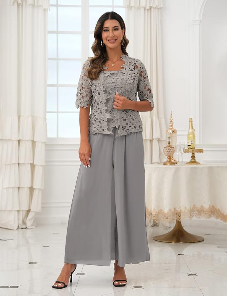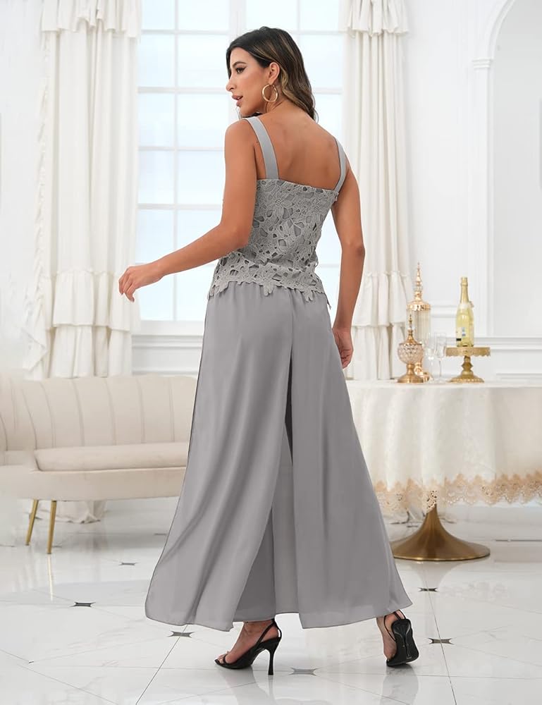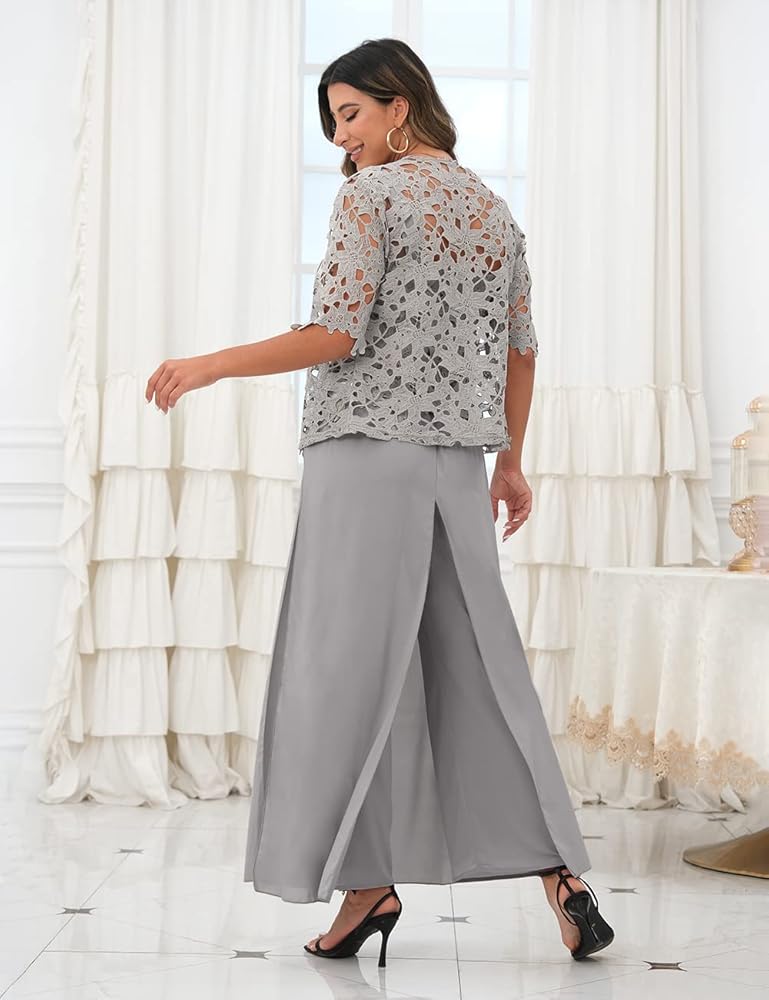 طقم سراويل نسائية مكون من 3 قطع من Zongqiven لحفلات الزفاف والدة العروس فستان سهرة رمادي