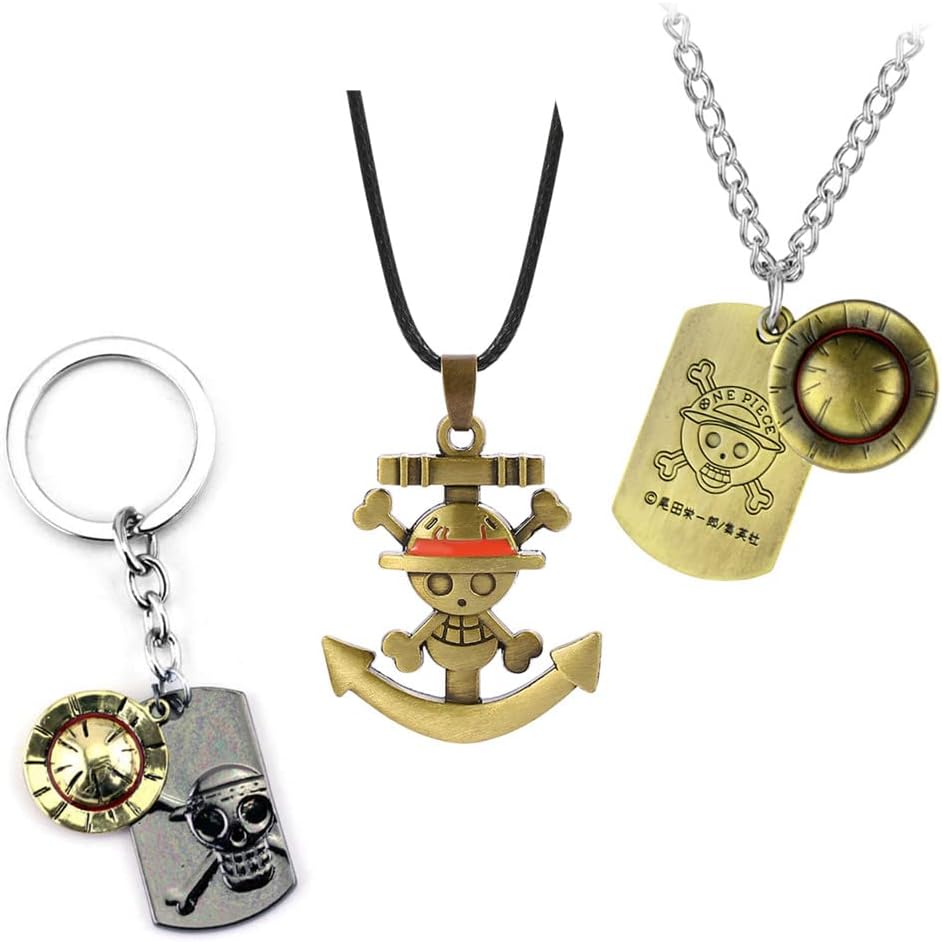 XCFS 3 قطع/مجموعة أنيمي قطعة واحدة من البضائع القرد D لوفي/مرساة مارك لوفي قبعة/كابتن Darkluffy جمجمة سلسلة مفاتيح من الفولاذ المقاوم للصدأ قطعة واحدة من أنيمي الاشياء المعلقات قلادة للرجال والنساء المشجعين