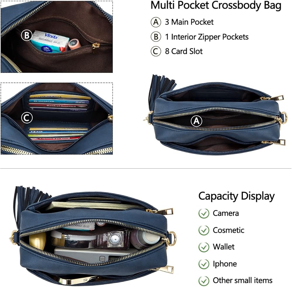 【حقيبة كروسبودي صغيرة بسحاب】تحتوي حقيبة الهاتف هذه على 3 جيوب بسحاب. 1 جيب رئيسي بسحاب (مع 1 × جيب داخلي بسحاب)، يمكنها حمل العناصر التي تحتاجها للسفر اليومي، مثل المحفظة والهاتف الخلوي والمفاتيح ومستحضرات التجميل وما إلى ذلك. 2 × جيب خارجي بسحّاب، مناسب لدفاتر الشيكات، وجوازات السفر، والإيصالات. 8 × فتحات بطاقات مناسبة لبطاقات الائتمان، والهوية، ورخصة السائق.