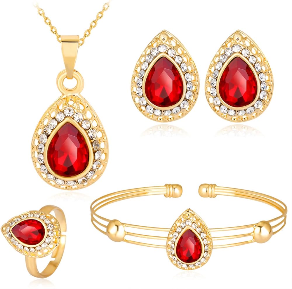 Txibikn 4 قطع أزياء أنيقة قطرات المياه الكريستال قلادة القرط سوار خاتم مجوهرات مجموعة للنساء زوجة حفل زفاف حفلة التخرج هدايا عطلة